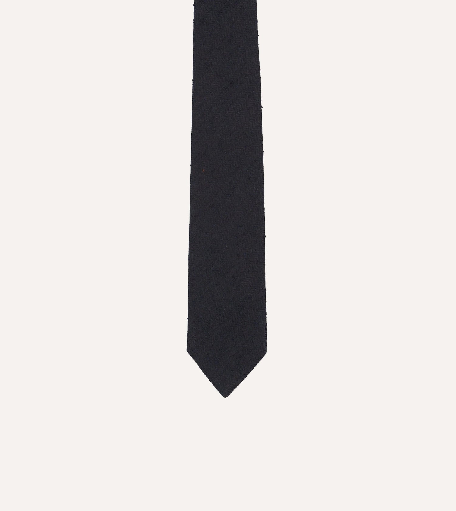 An elegant necktie, handmade in London from Shantung silk, known for its natural slub texture and unique handle.