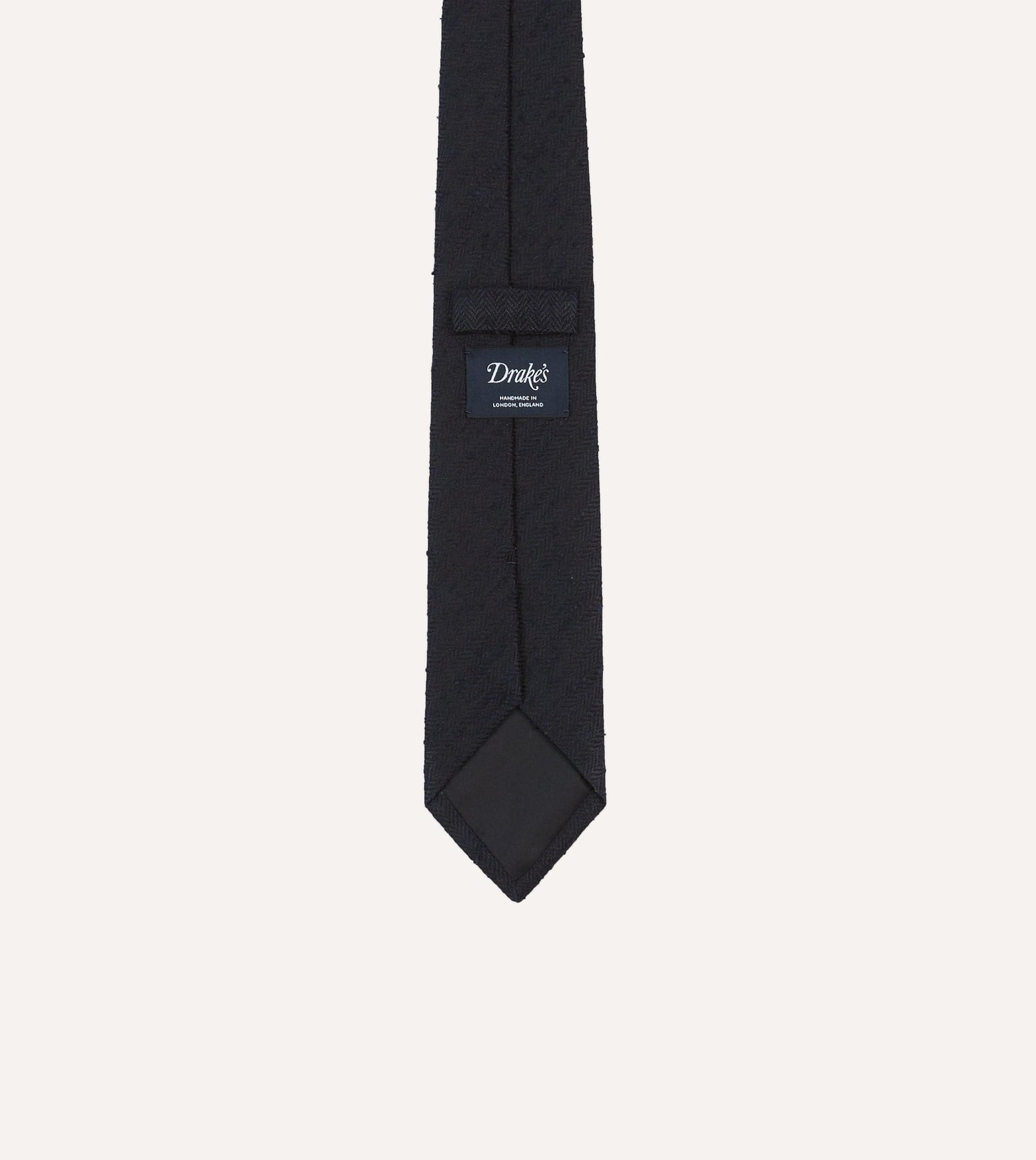 Tipping is the fabric sewn on the back of the tip and tail of a tie. Our trademark tipping is present in the form of a pure silk in Drake’s Navy.