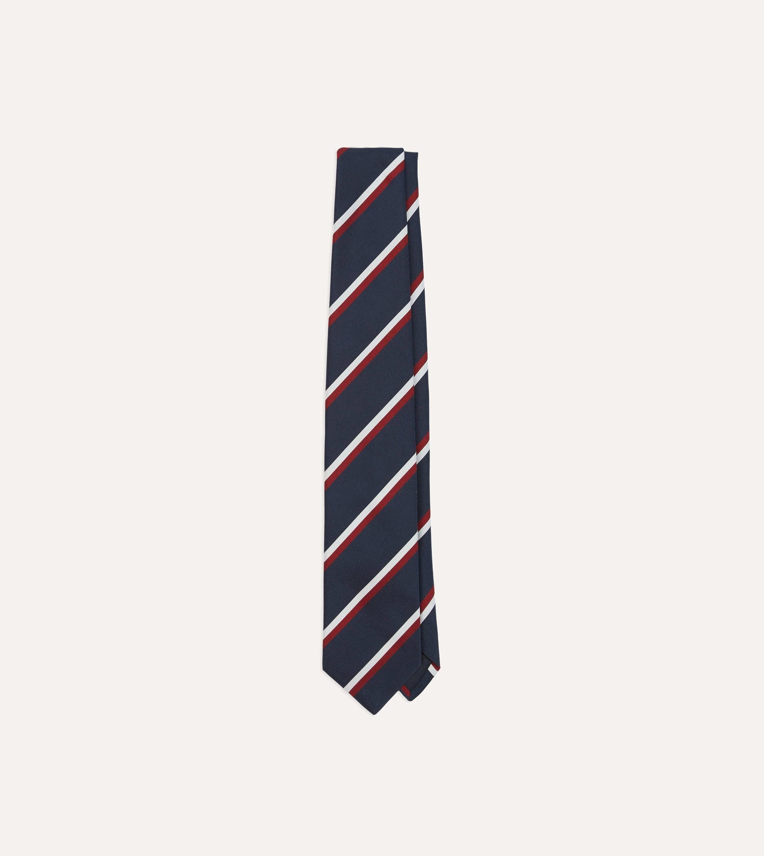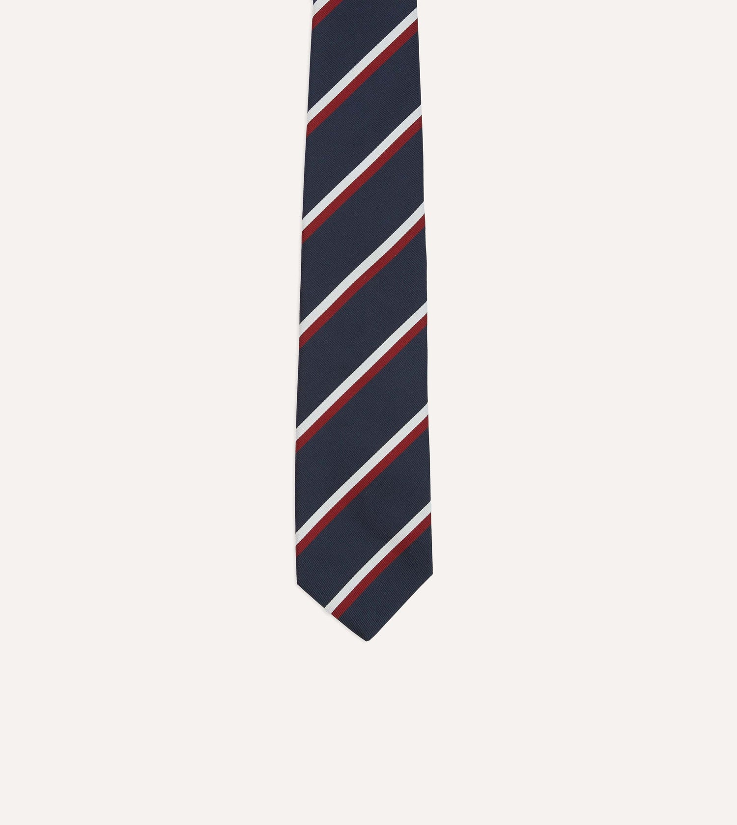 Navy, Red and White Double Stripe Mogador Silk Tipped Tie