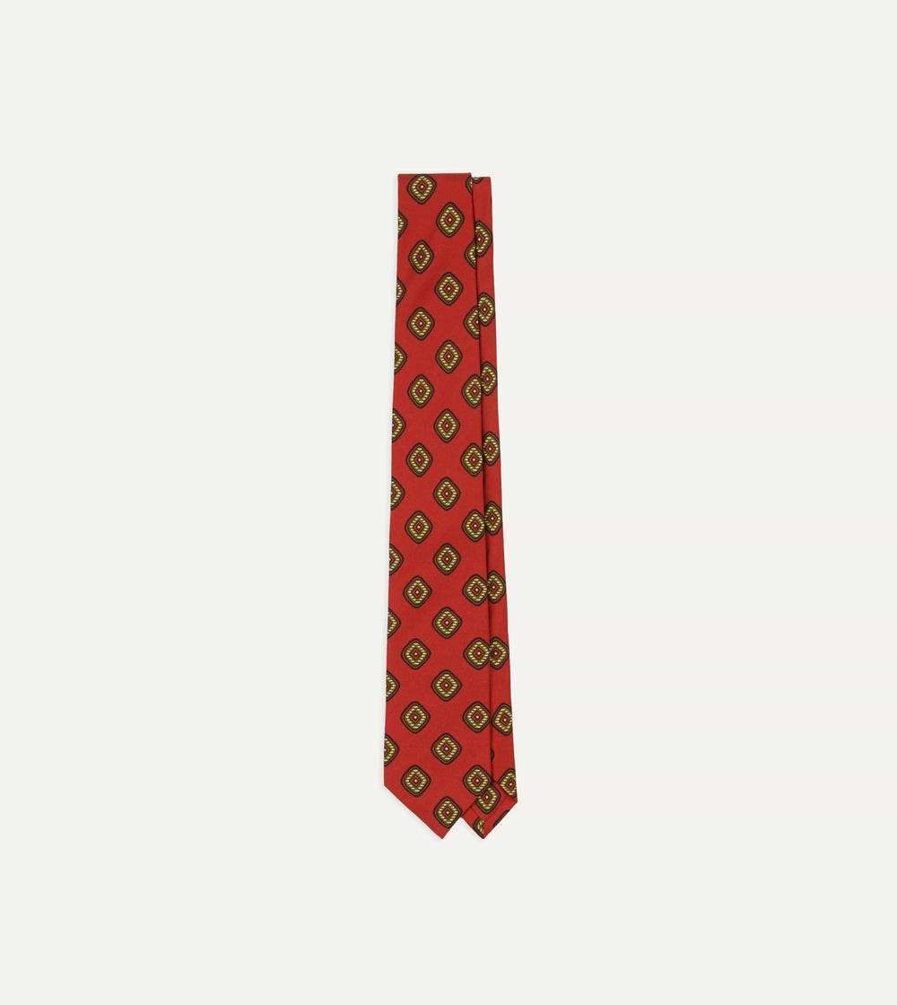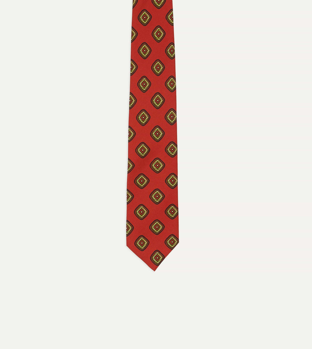 An elegant necktie, handmade in London and featuring an archival tile design, hand-printed in Macclesfield on 36oz Madder silk.