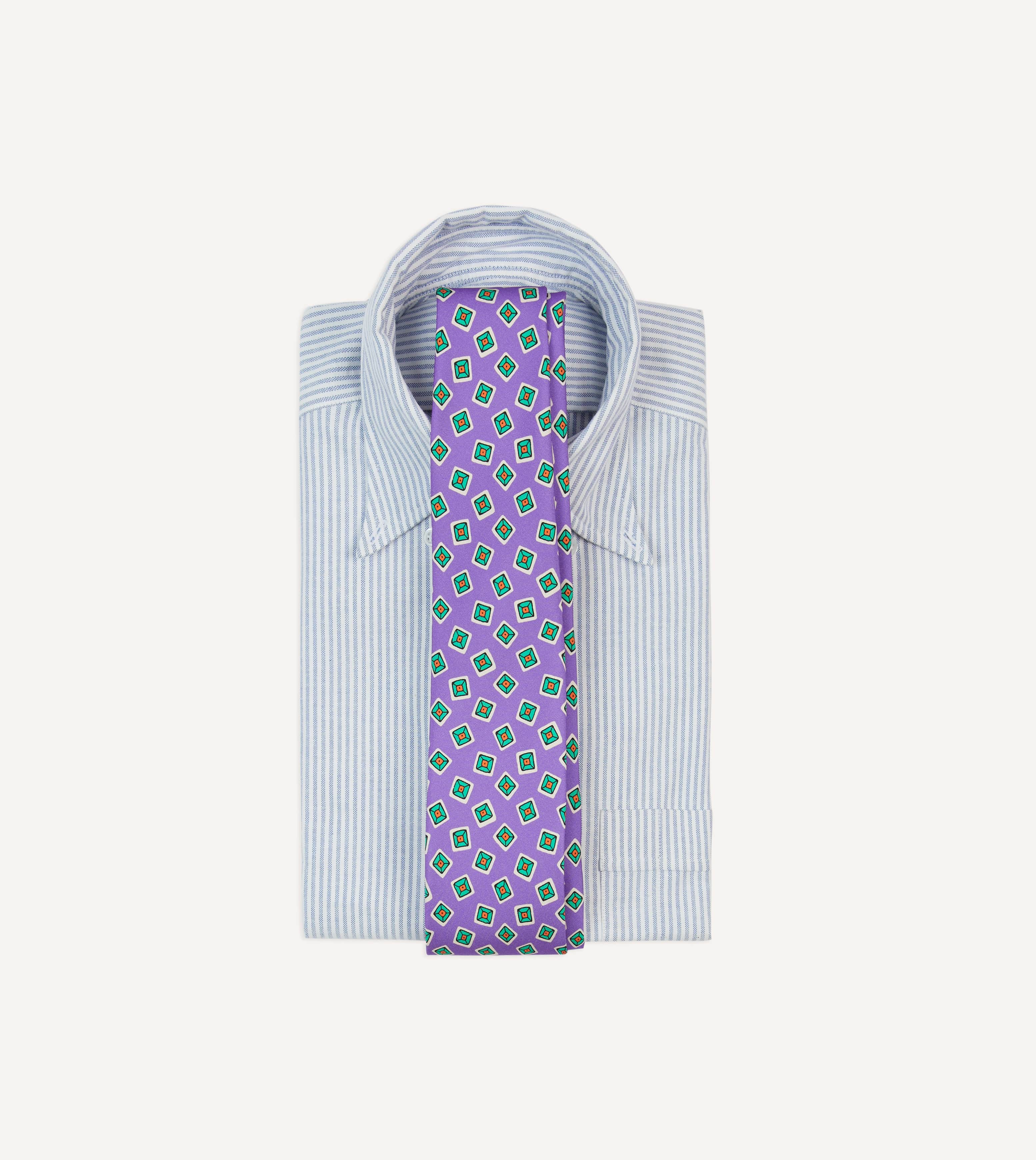 Purple Jumbled Tile Print Silk Self Tipped Tie