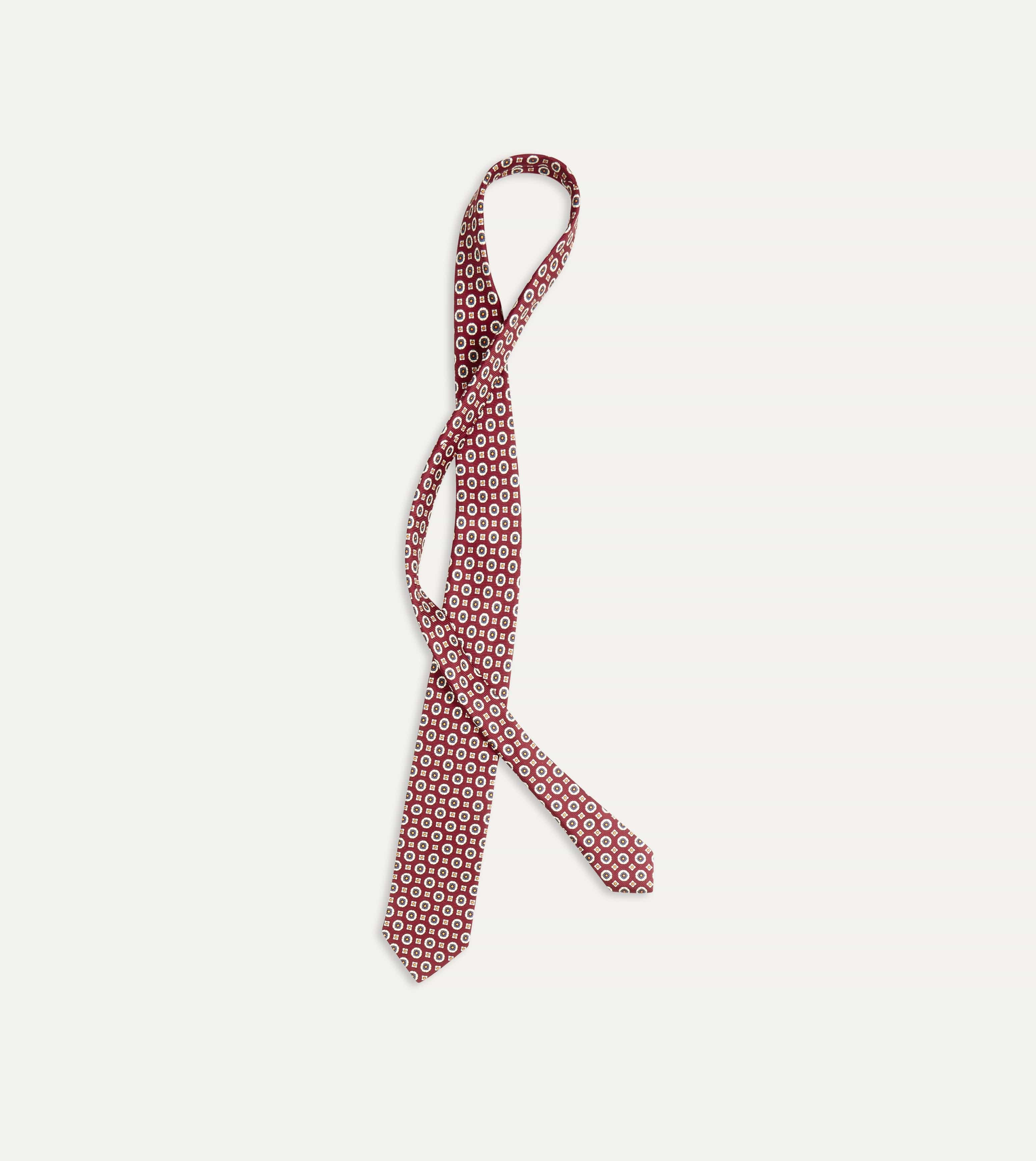 An ornate medallion design simply exudes elegance, particularly when printed on pure silk and hand rolled by our dedicated tiemakers in the heart of east London.