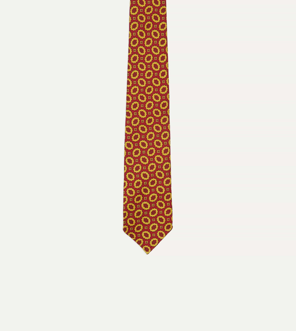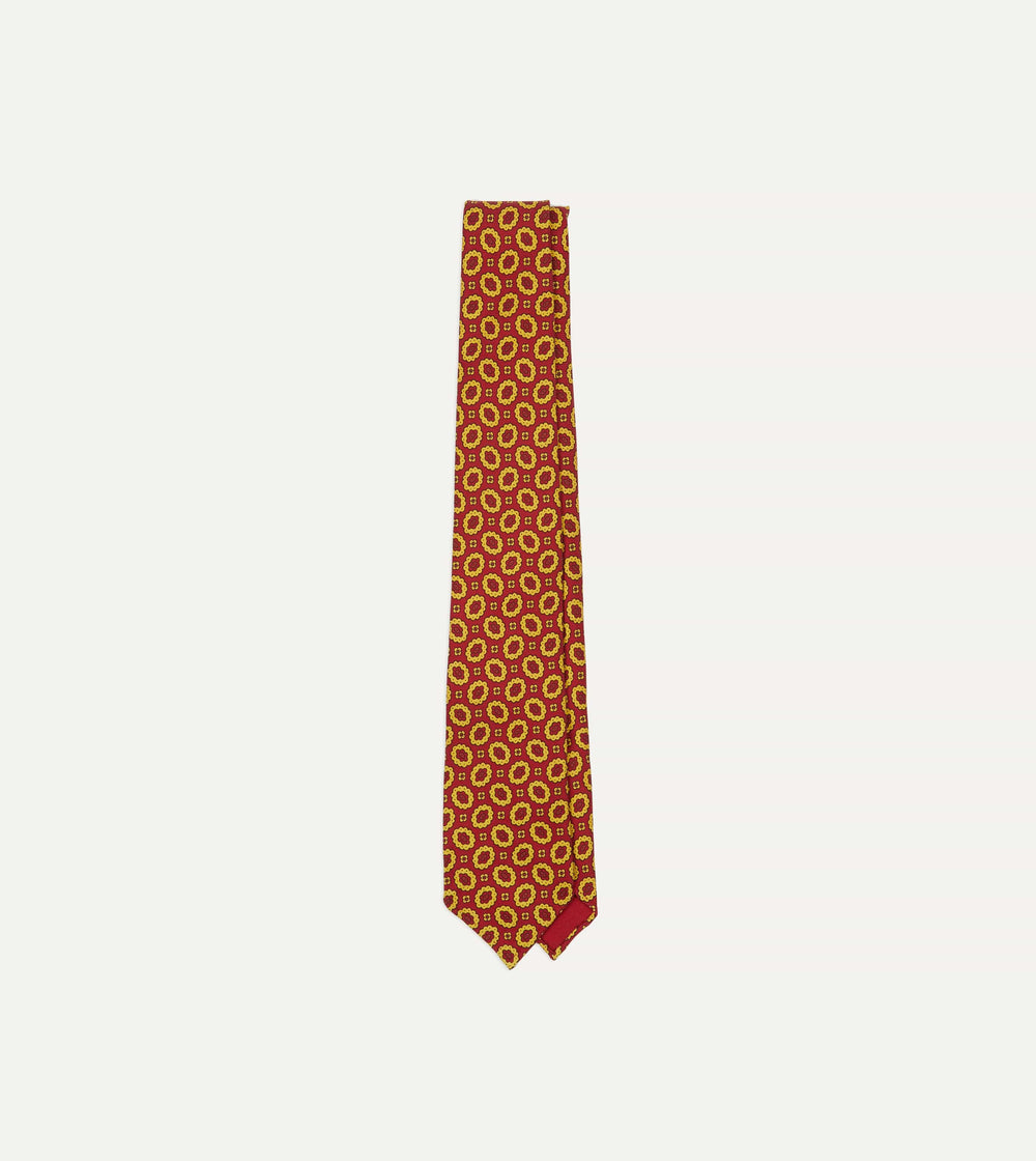 An elegant necktie, handmade in London and featuring an archival tile design, hand-printed in Macclesfield on 40oz Madder silk.