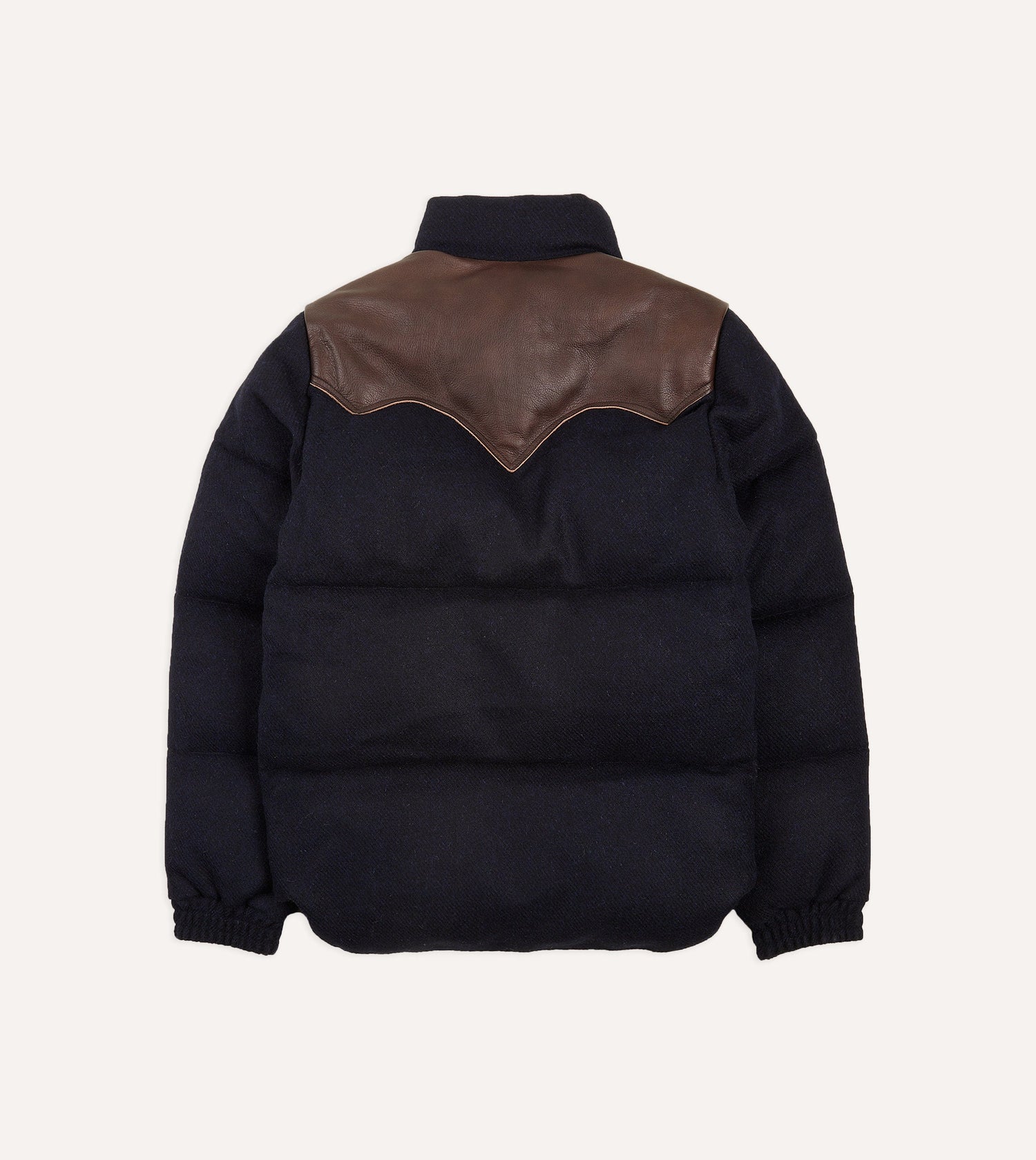 Rocky Mountain Featherbed for Drake's Navy Harris Tweed Leather Christy Down Jacket