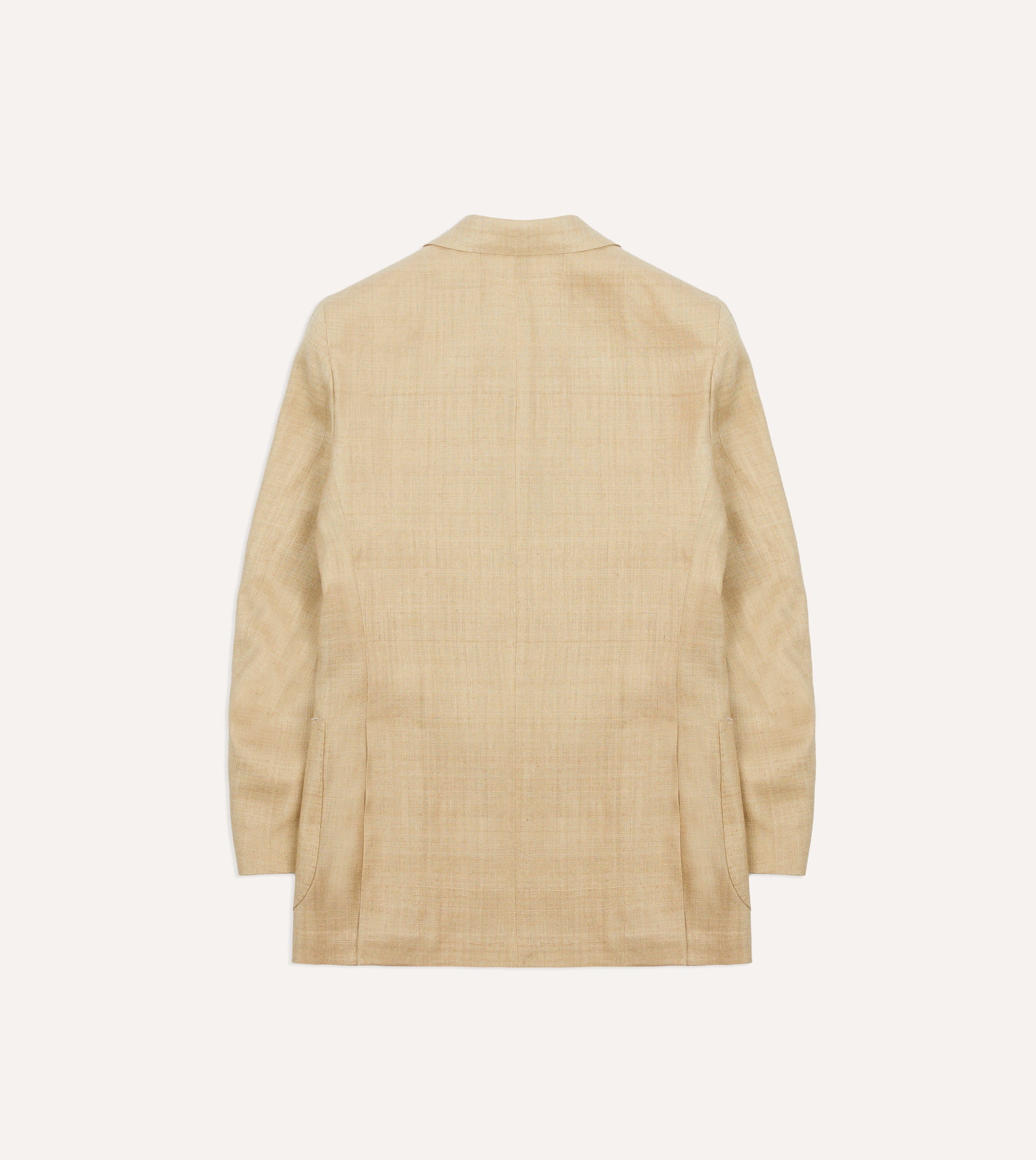 Ours is softly tailored in our house cut from raw spun tussah silk. The natural slub in the silk gives the jacket a great texture. With a four-button fastening, a slightly bellied lapel, patch hip pockets with our signature patch ticket pocket, and our signature soft shoulder ensuring a highly versatile piece of tailoring.