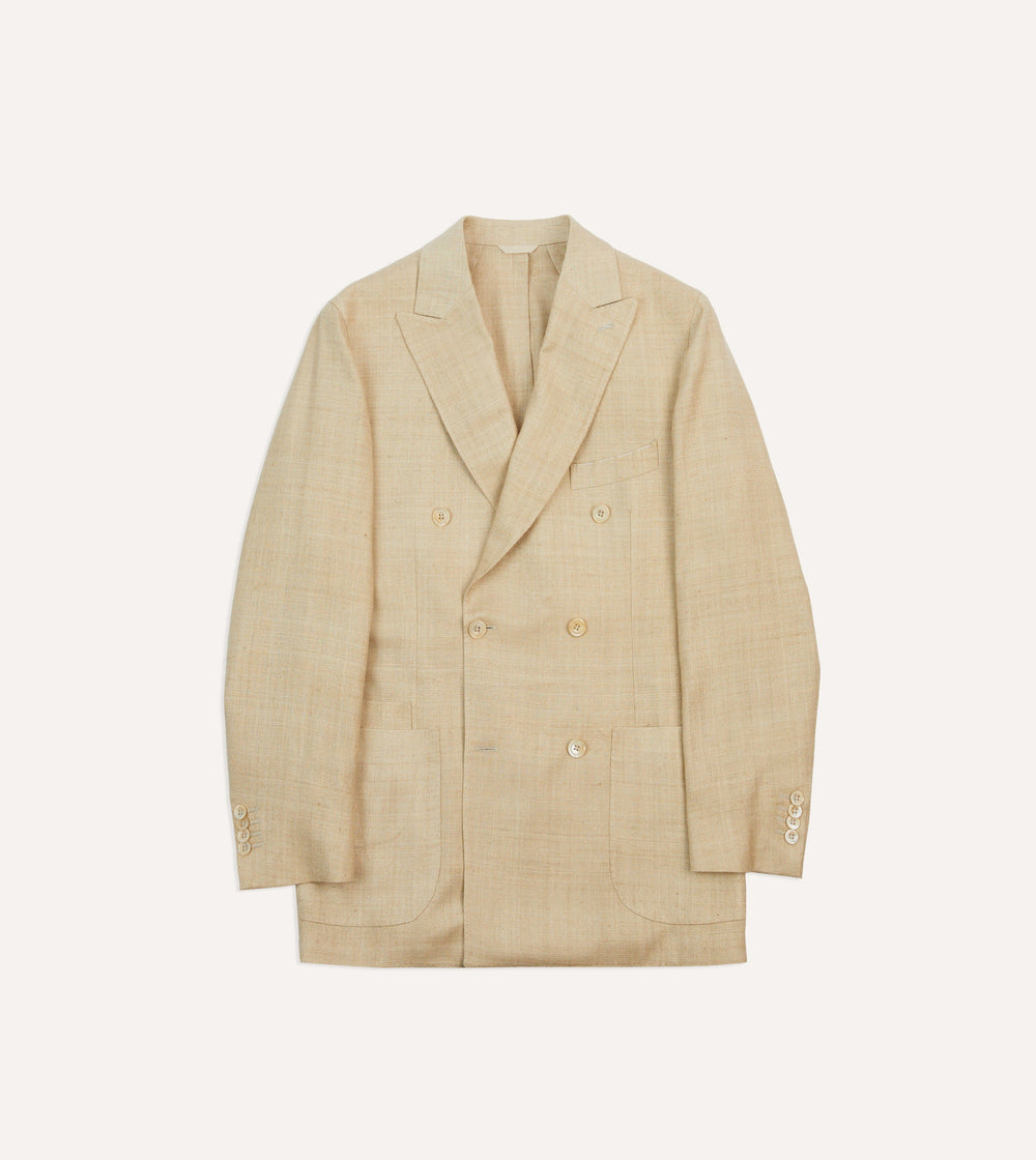Sand Tussah Silk Double-Breasted Tailored Jacket