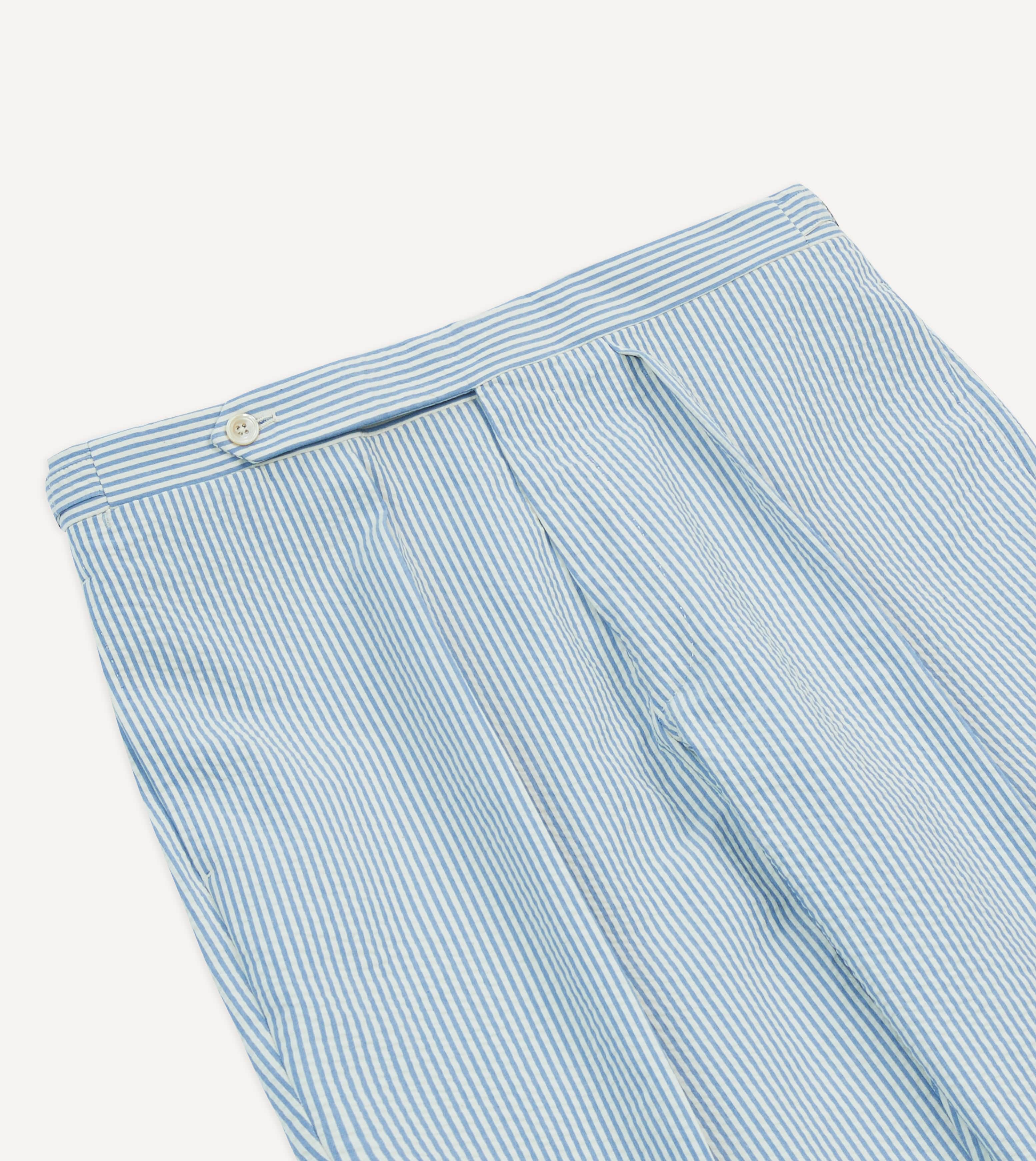 A tactile and lightweight 7oz seersucker fabric combines with an unlined Italian construction for the optimum in lightweight tailoring.