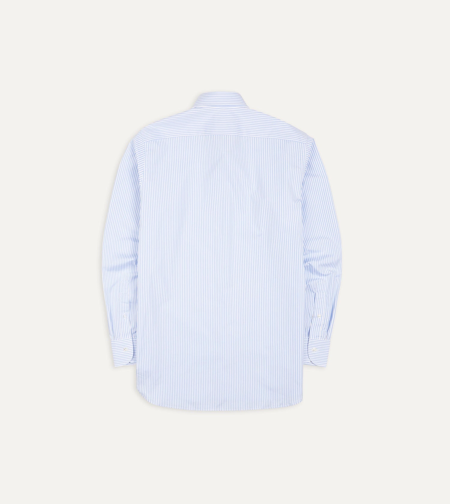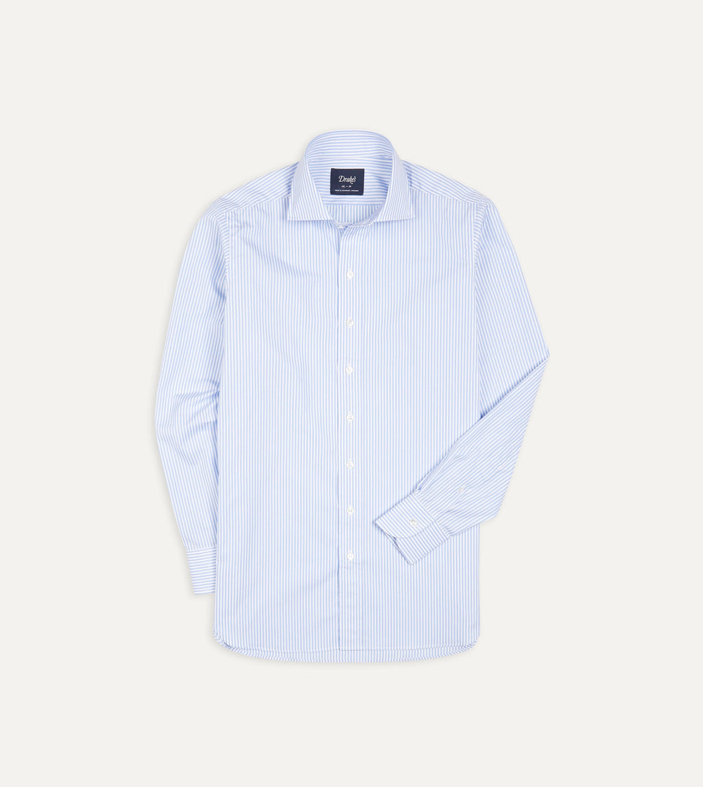 Sky Blue and White Bengal Stripe Spread Collar Cotton Poplin Shirt