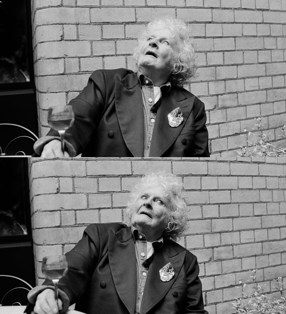 The barman is busy preparing a fresh concoction while Maggi vapes on the terrace outside. She was forced to give up smoking, for the second time, after a heart attack in New York a few years ago. A passerby shouts out: “Are you Maggi Hambling?” Which is a funny thing to say when Maggi Hambling is so obviously, wonderfully, and totally Maggi Hambling. With that shock of grey hair and dark eyeliner she’s got an unmistakable presence, and which could be read as intimidating if she wasn’t so charming. “I admit it,” she shouts back, “I’m Maggi Hambling.”