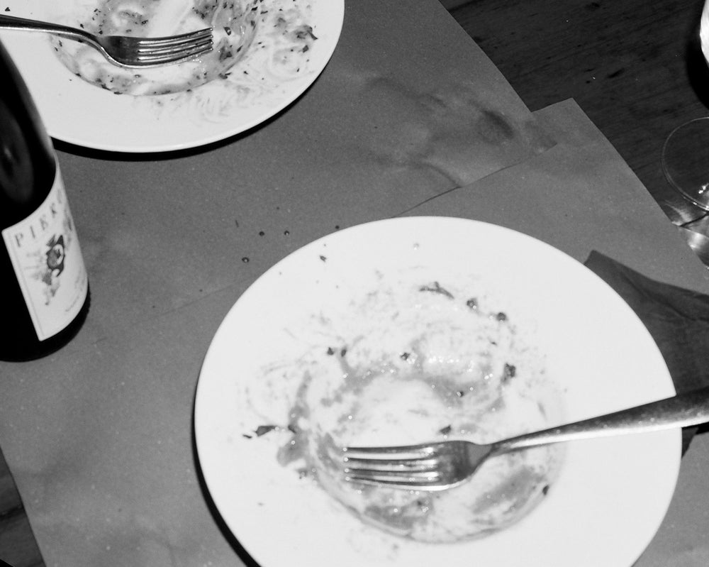 A burly, middle-aged man had shown us to the table, but it was his nonna that waited on us. We ordered a bottle of pignoletto frizzante (€7) that was made a few miles away and settled into the menu. Other than us, there was a young family with a baby dressed smart for lunch, and an unspeaking middle-aged couple that shared only the occasional smile. In one corner, three thick-necked businessmen sat at a table laden with bread and ragu, scheming.