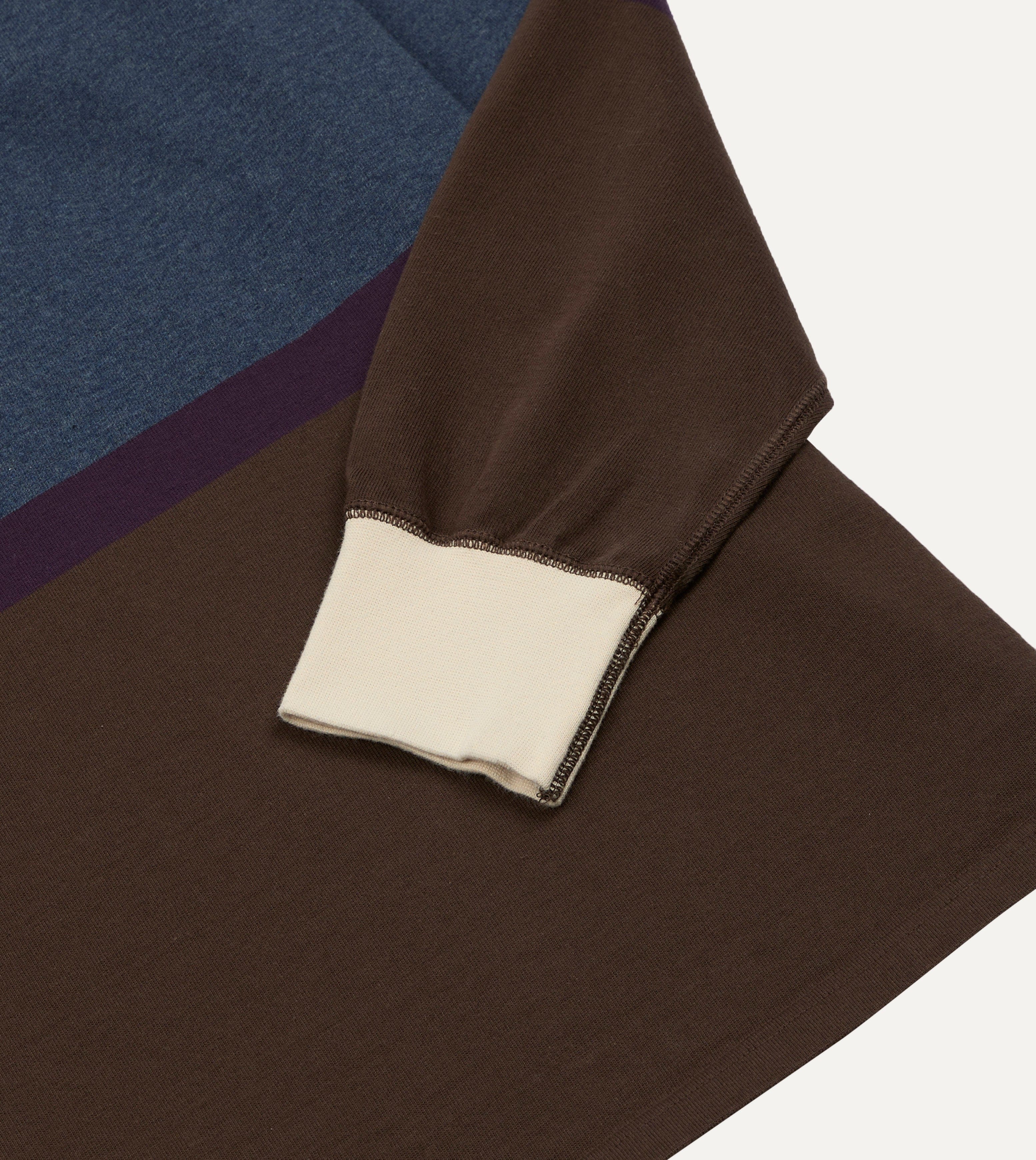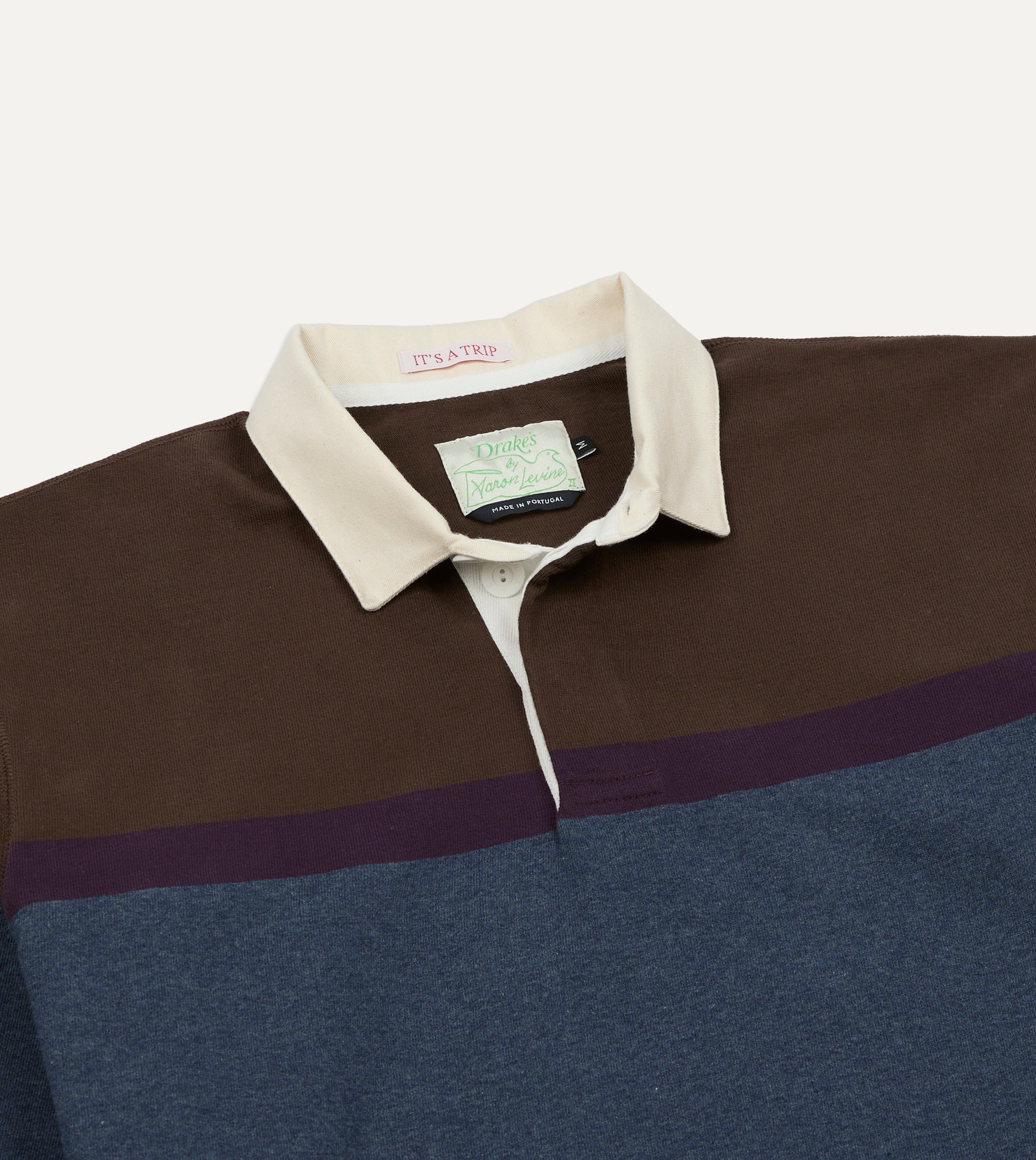 Drake's by A. Levine Brown and Blue Centre Stripe Cotton Rugby Shirt