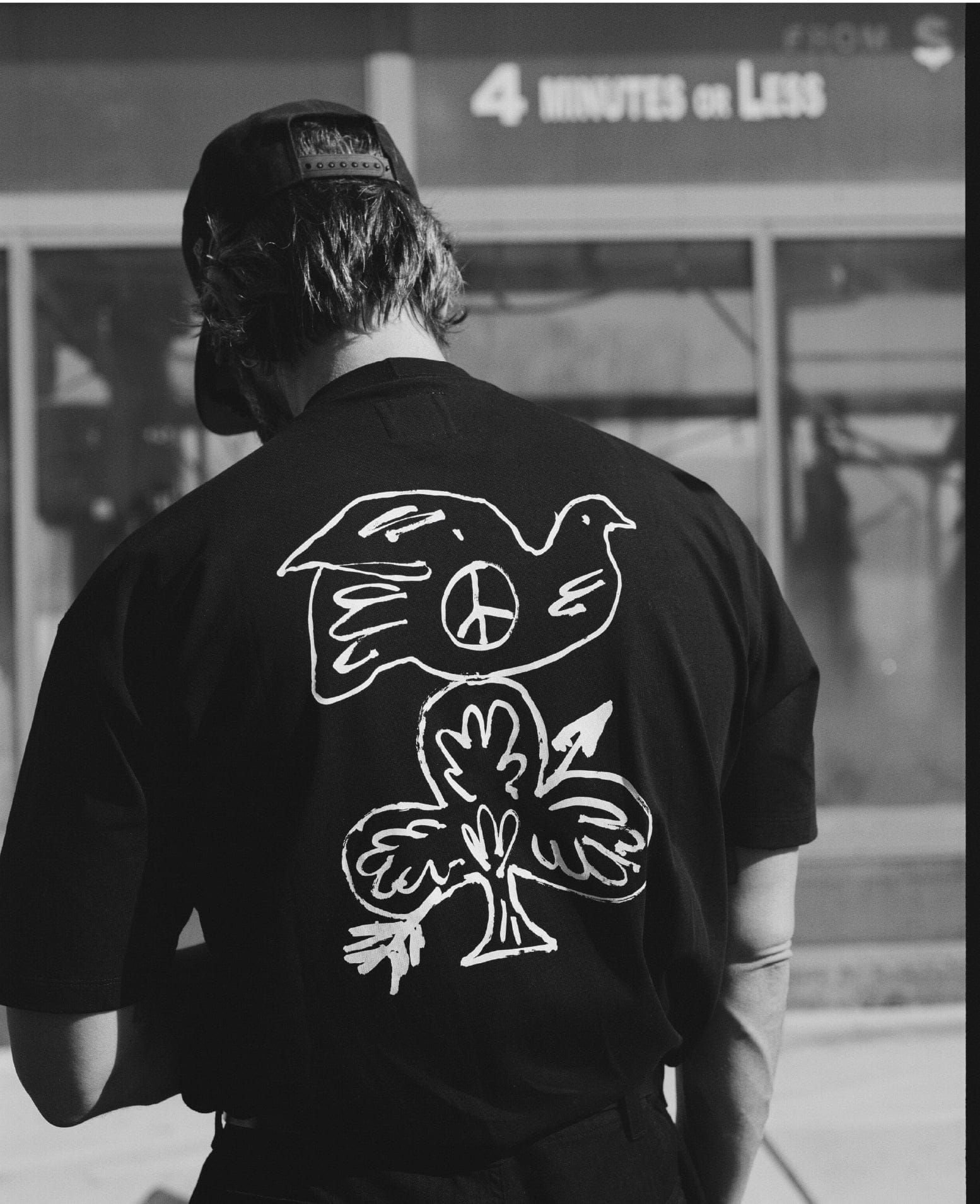 Relaxed in fit, serious in construction, and entirely unserious in spirit, this limited-edition T-shirt is cut from a 6.7oz Portuguese cotton jersey, heavy enough to hang cleanly, light enough for lounging.