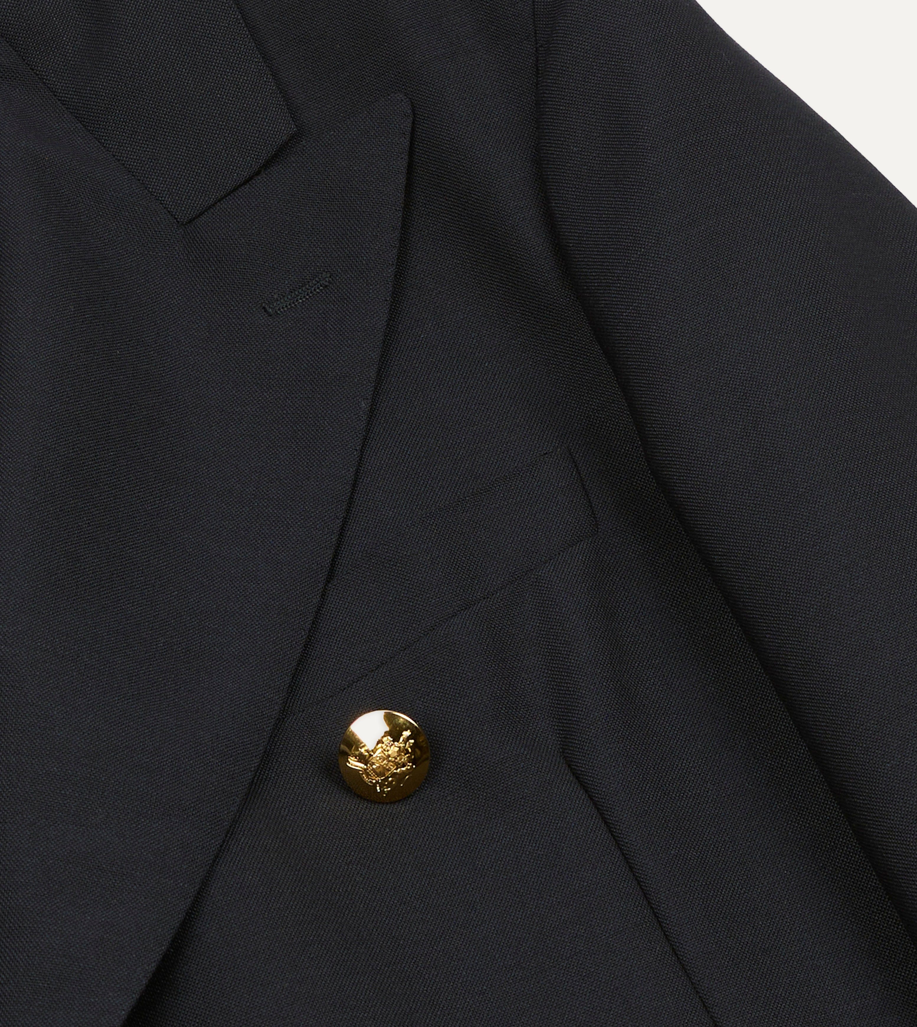 Cut in the Drake’s house silhouette, this blazer is softly tailored with a natural shoulder, gently bellied lapels, and a light construction that flatters without ever feeling rigid. Details, including a 6x2 button stance, polished brass crest buttons from one of Britain’s oldest ceremonial suppliers, and patch hip pockets with our signature ticket pocket, underscore its louche character.