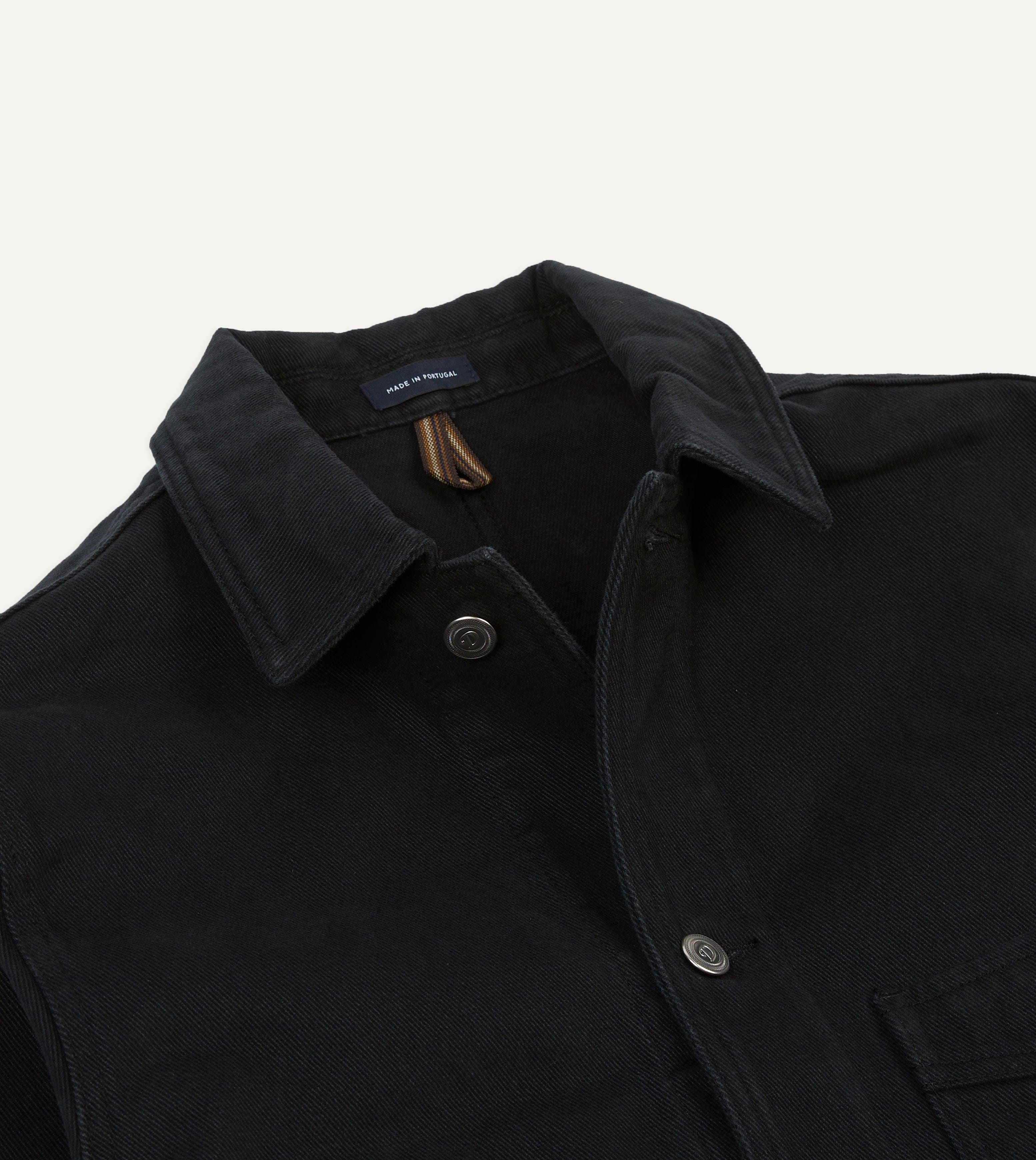 Black Heavy Twill Cotton Five-Pocket Chore Jacket