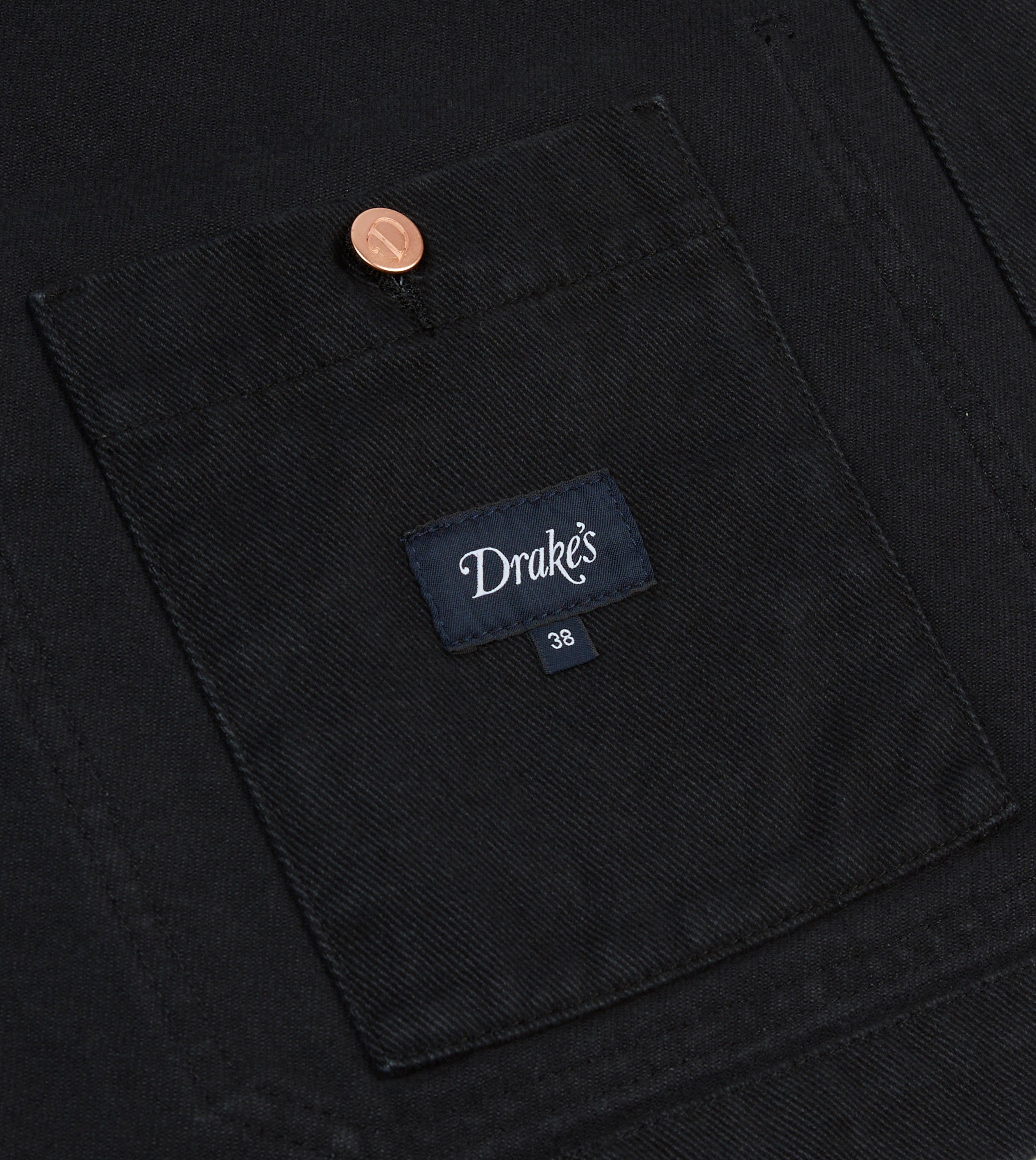 This version is made from a heavyweight cotton twill, with three outer pockets (plus a signature Drake's ticket pocket peaking out on the left-hand side), and one inner pocket. It is cut generously, with a slightly boxy shape recalling the original workwear garments worn around the turn of the century, as opposed to their slimmed-down, contemporary counterparts.