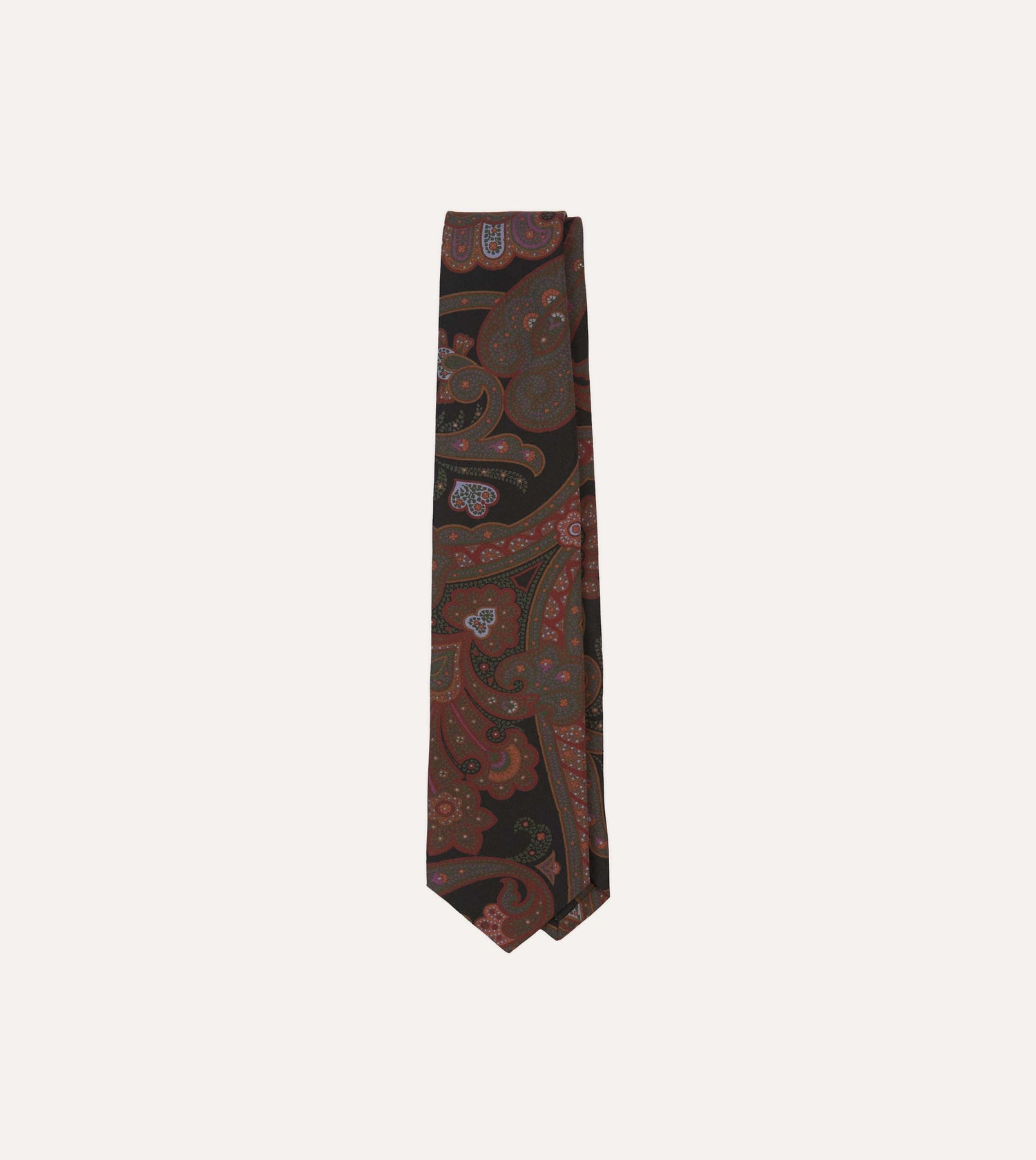 Black Large Paisley Print Madder Silk Self-Tipped Tie