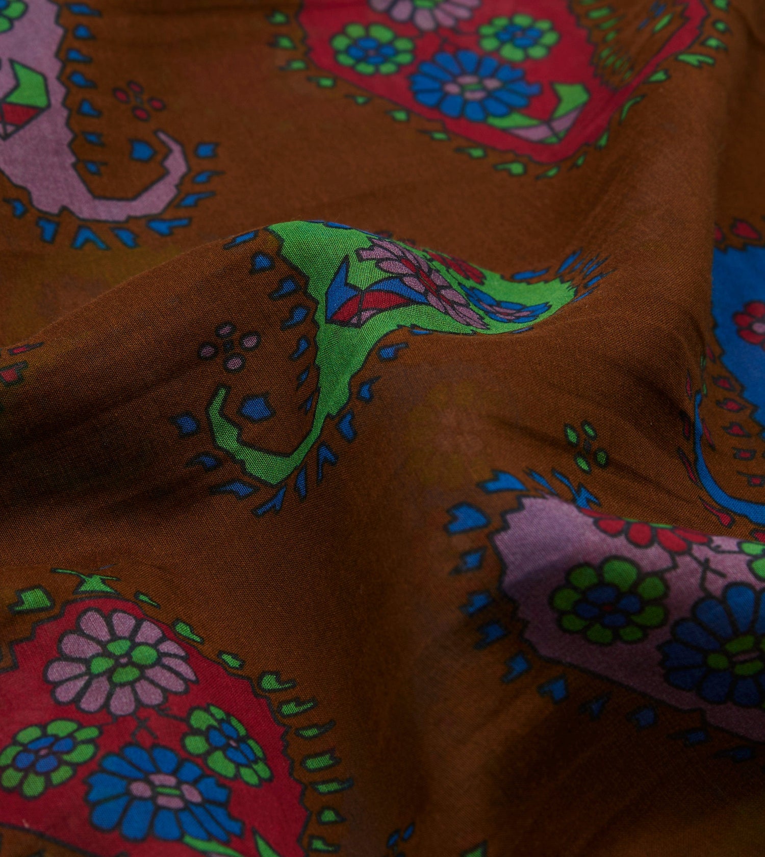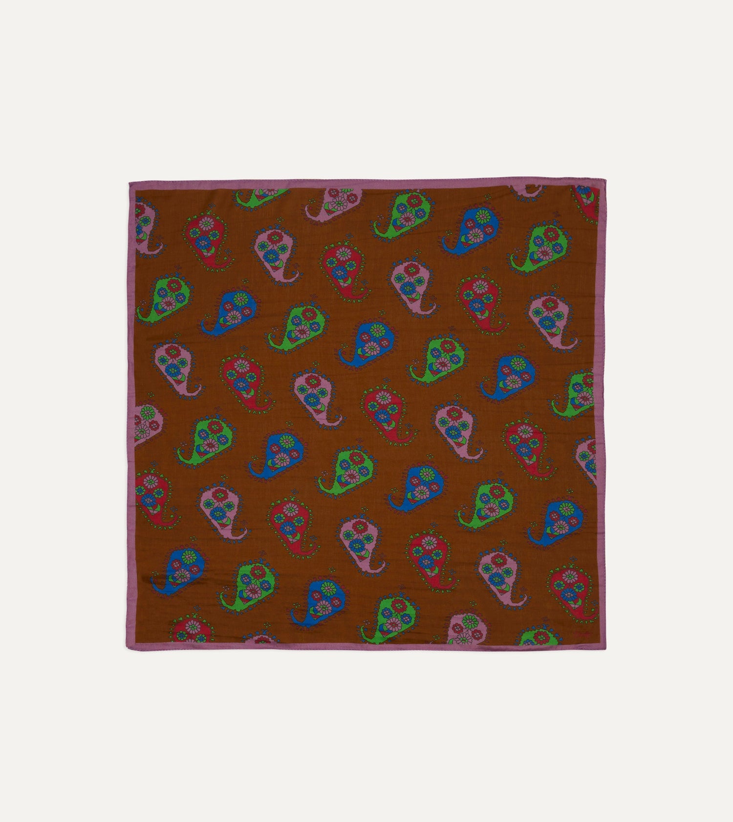 Brown Flower Paisley Print Silk-Cotton Bandana