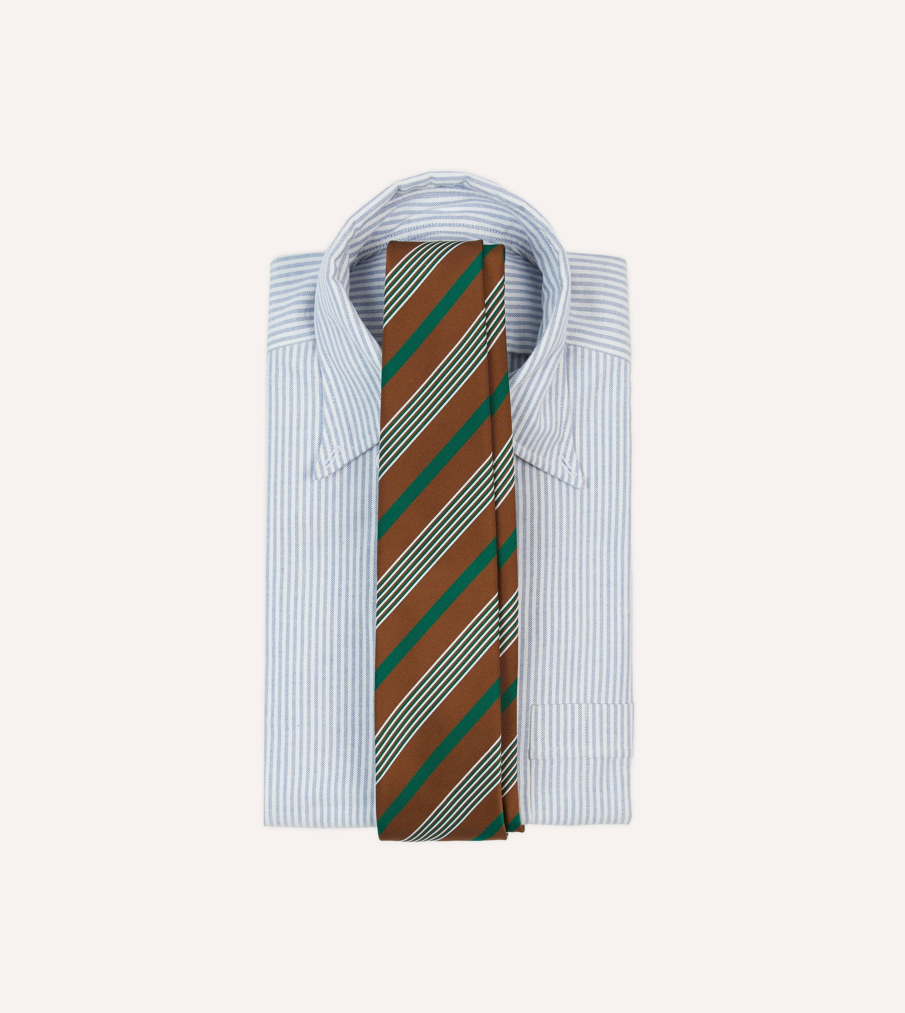 Brown, Green and White Multi Stripe Mogador Silk Tipped Tie