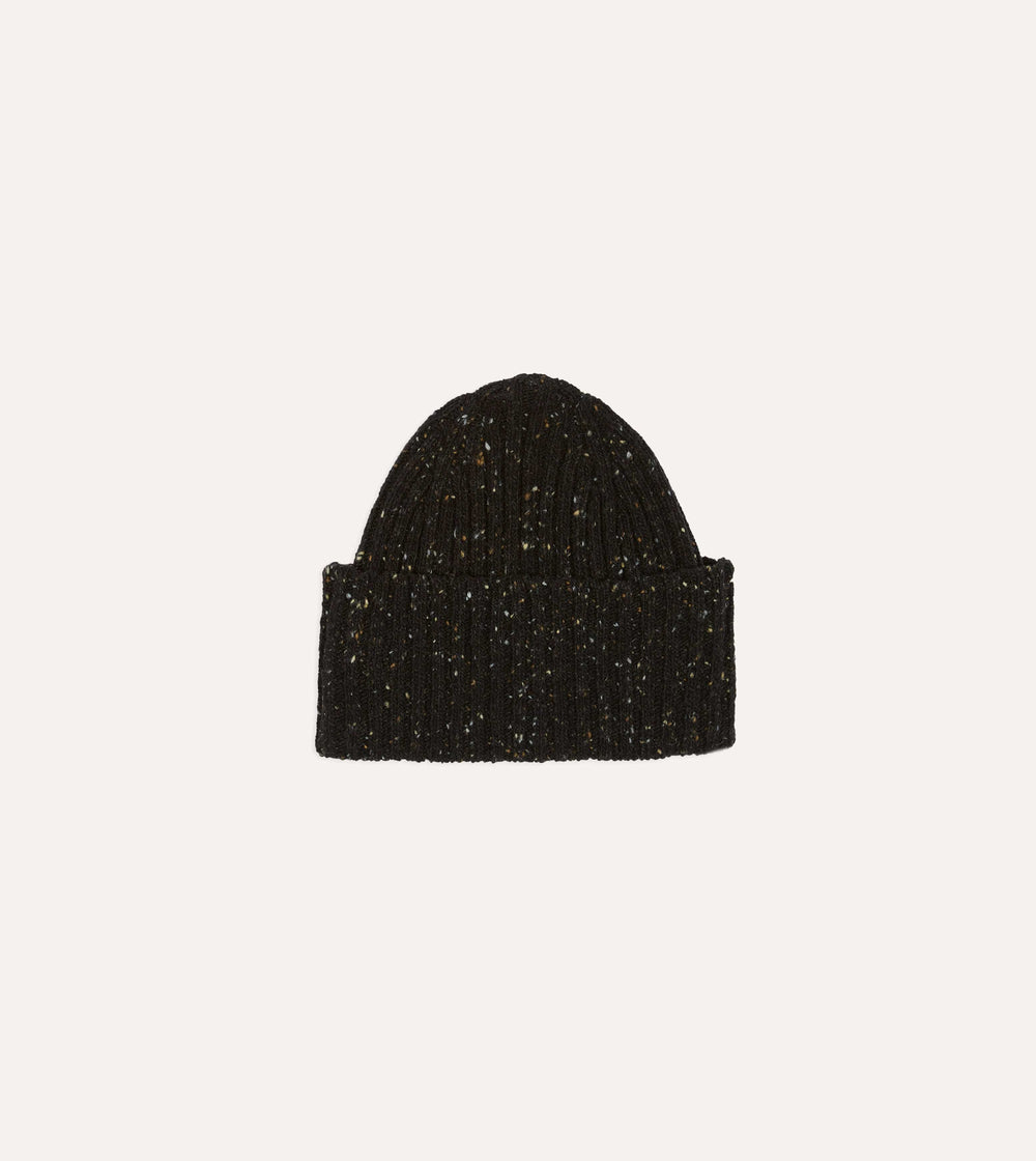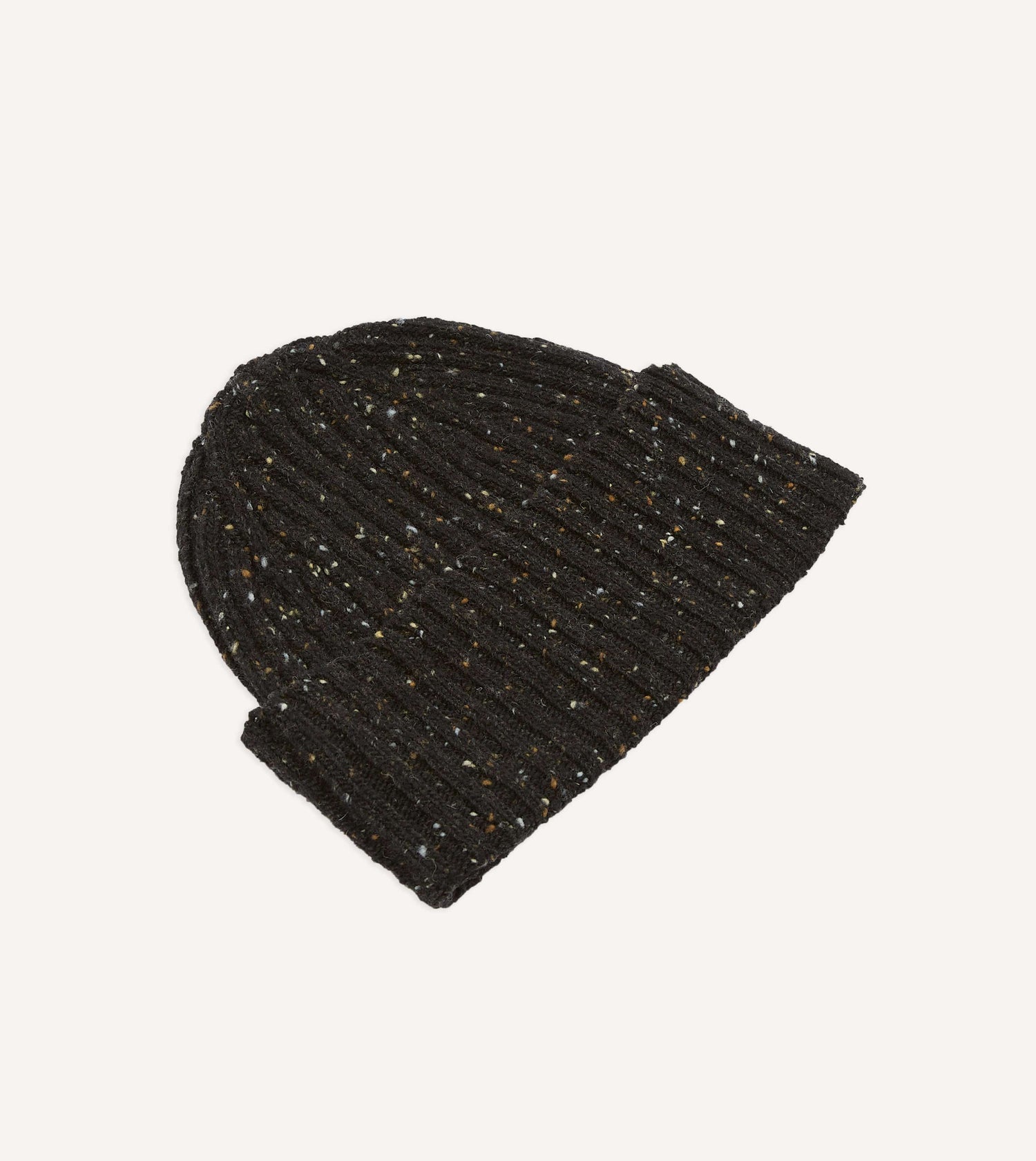 Dark Brown Donegal Ribbed Merino Knit Cap