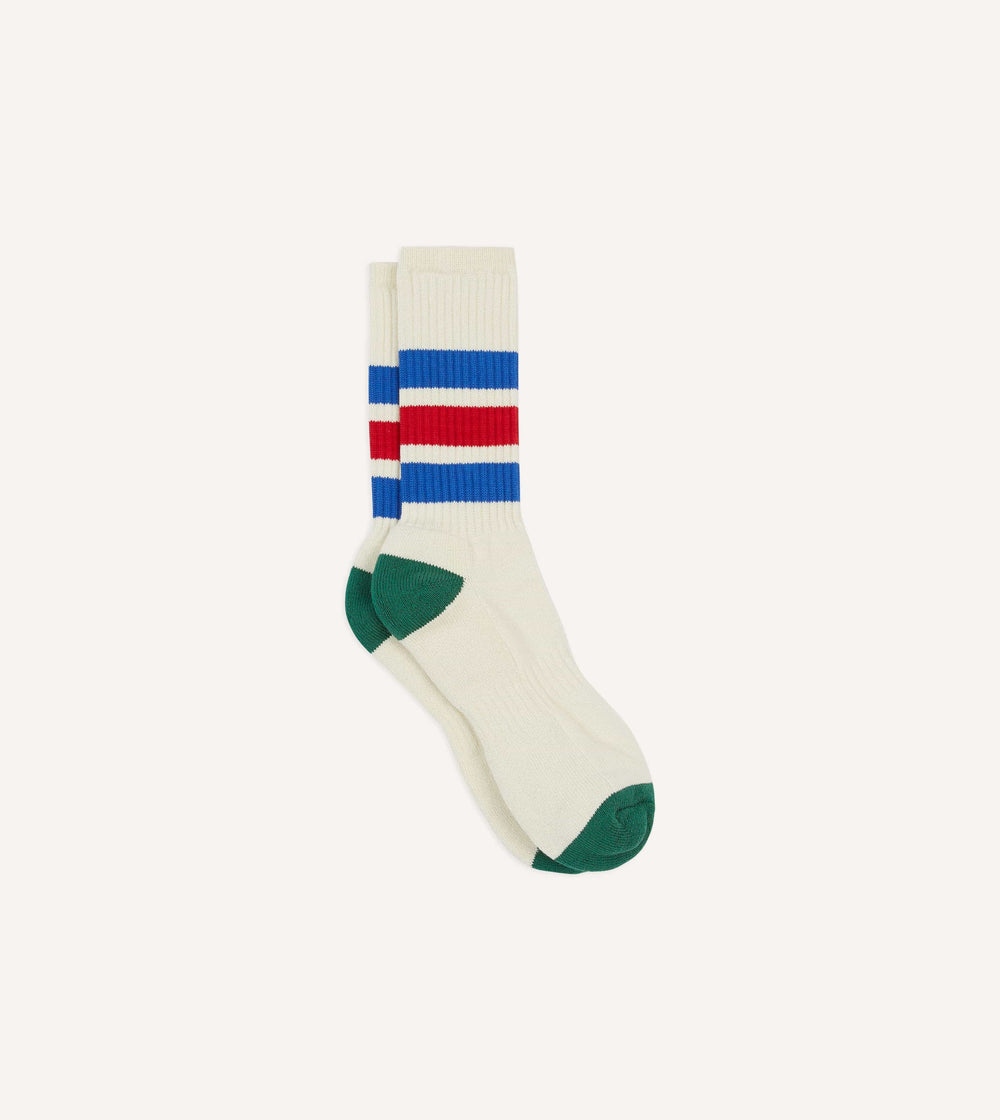 Ecru, Blue and Red 3 Stripe Cotton Sports Sock