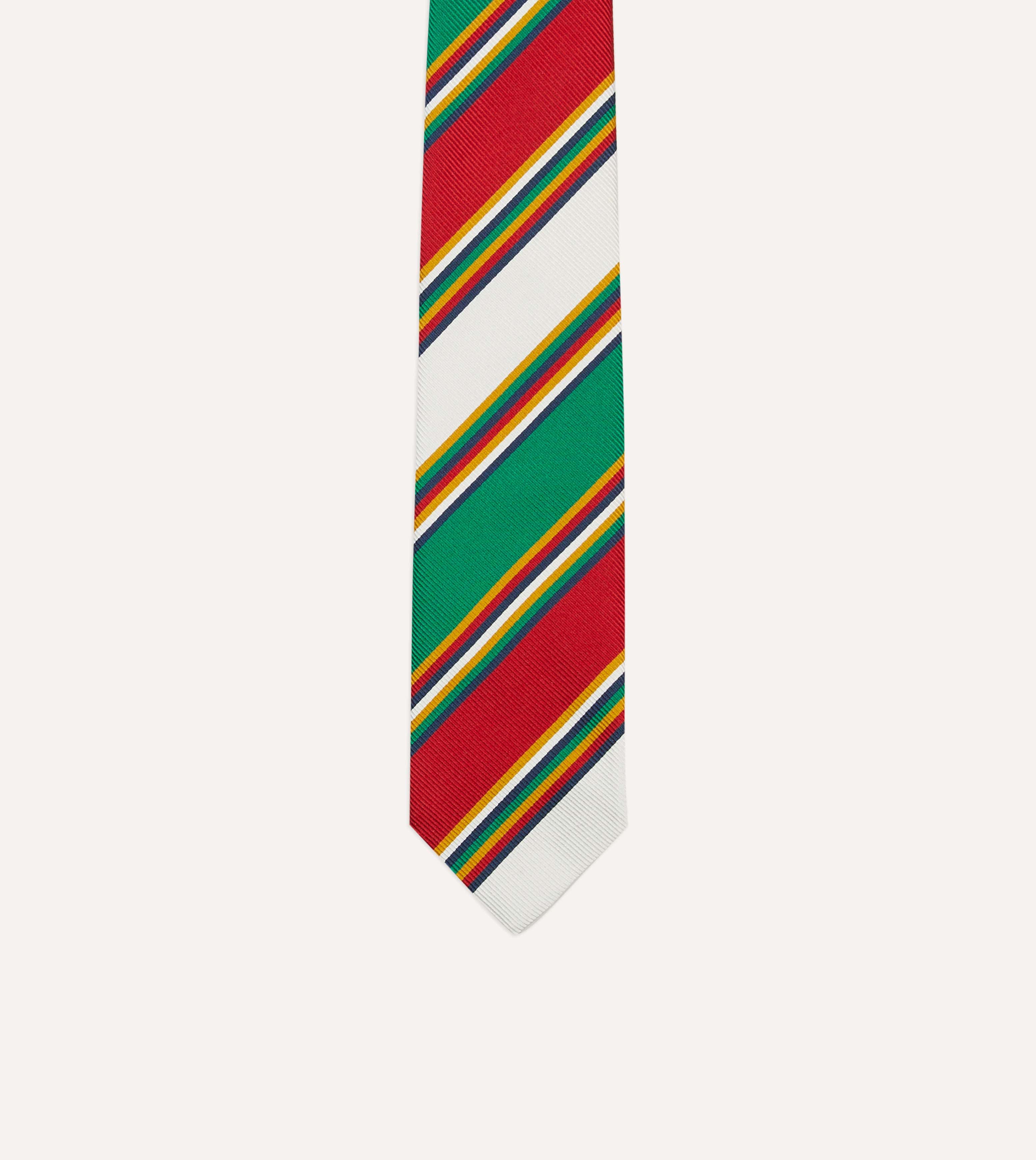 Green, Red and White Stripe Mogador Silk Tipped Tie