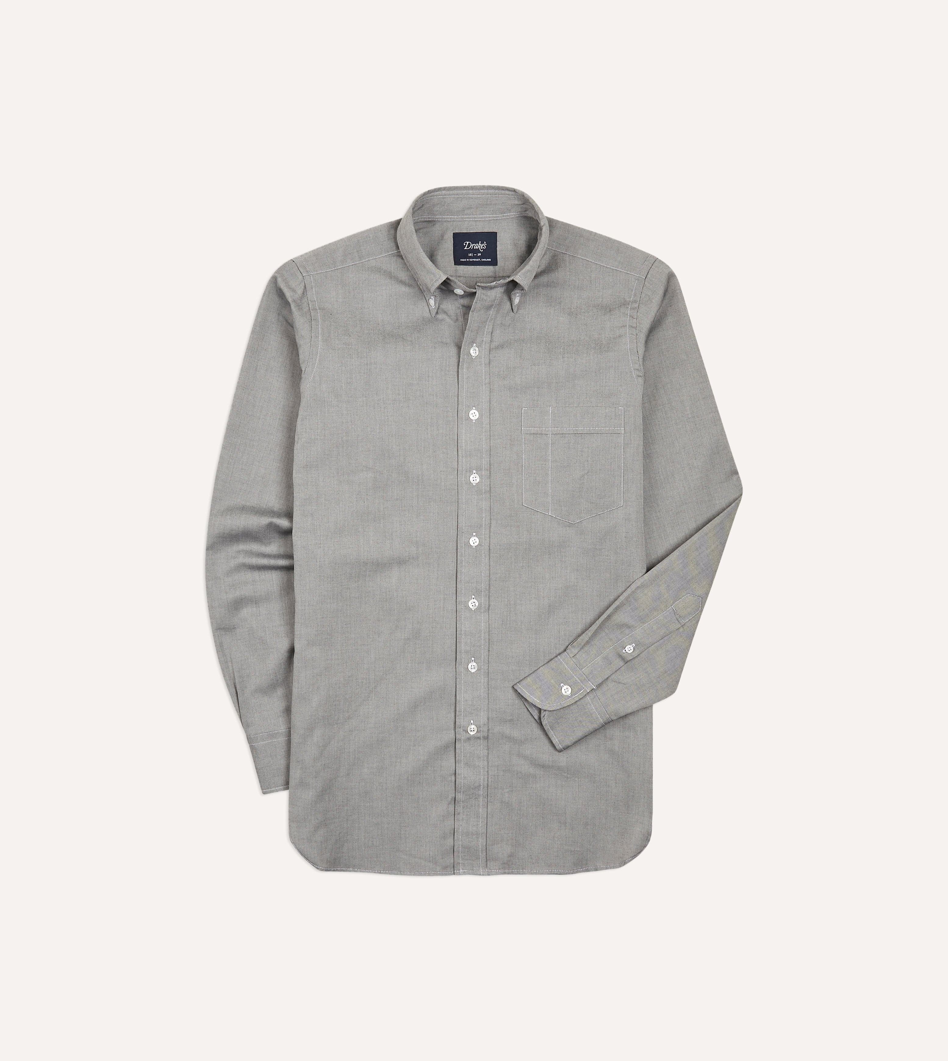 Grey Pinpoint Oxford Cotton Cloth Button-Down Shirt