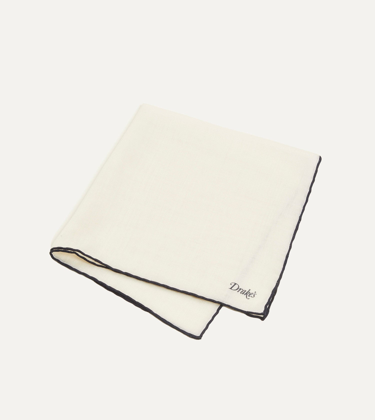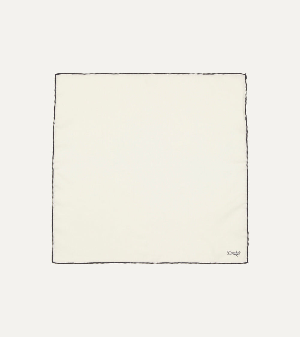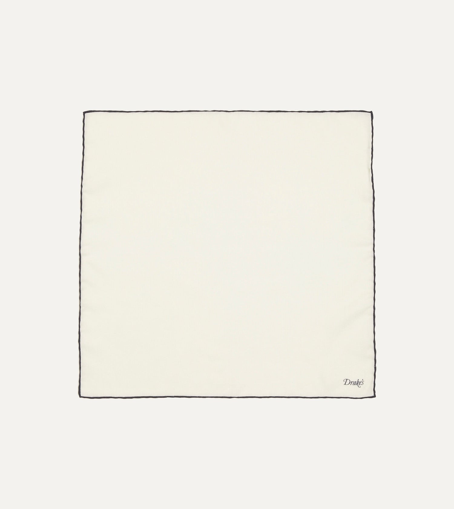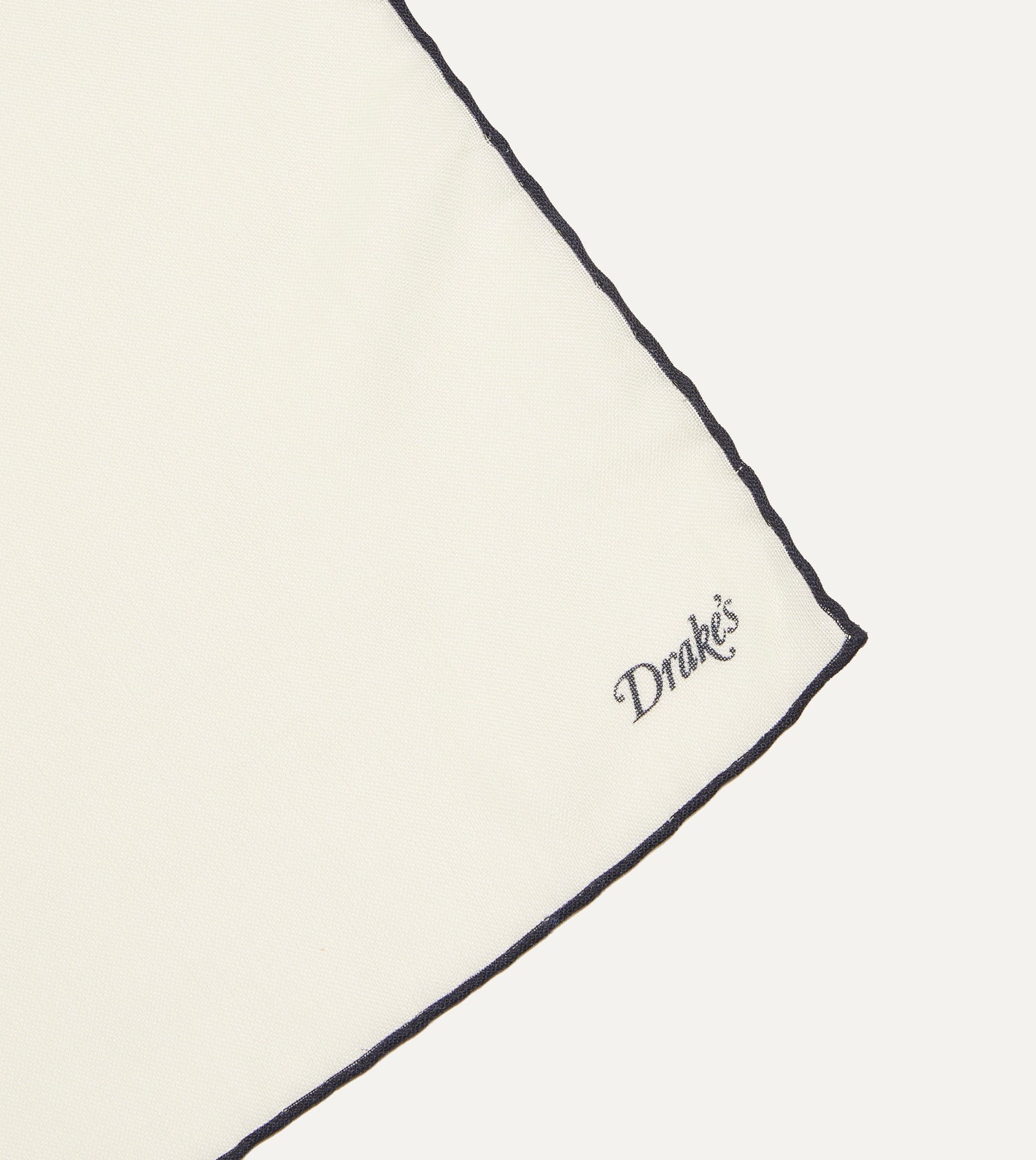 Ivory and Navy Shoestring Border Silk Pocket Square
