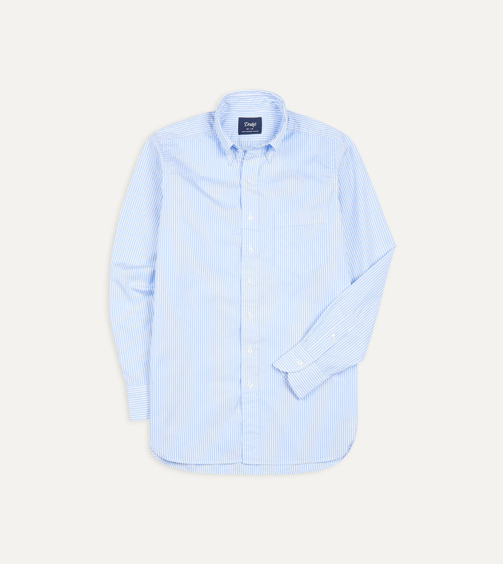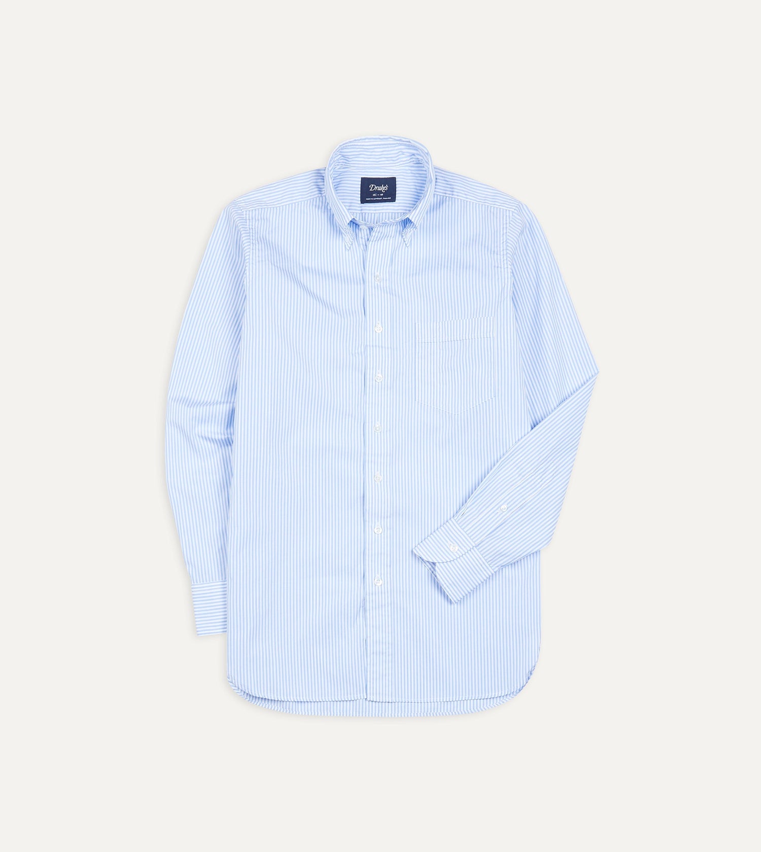 Light Blue Bengal Stripe Cotton Poplin Button-Down Shirt