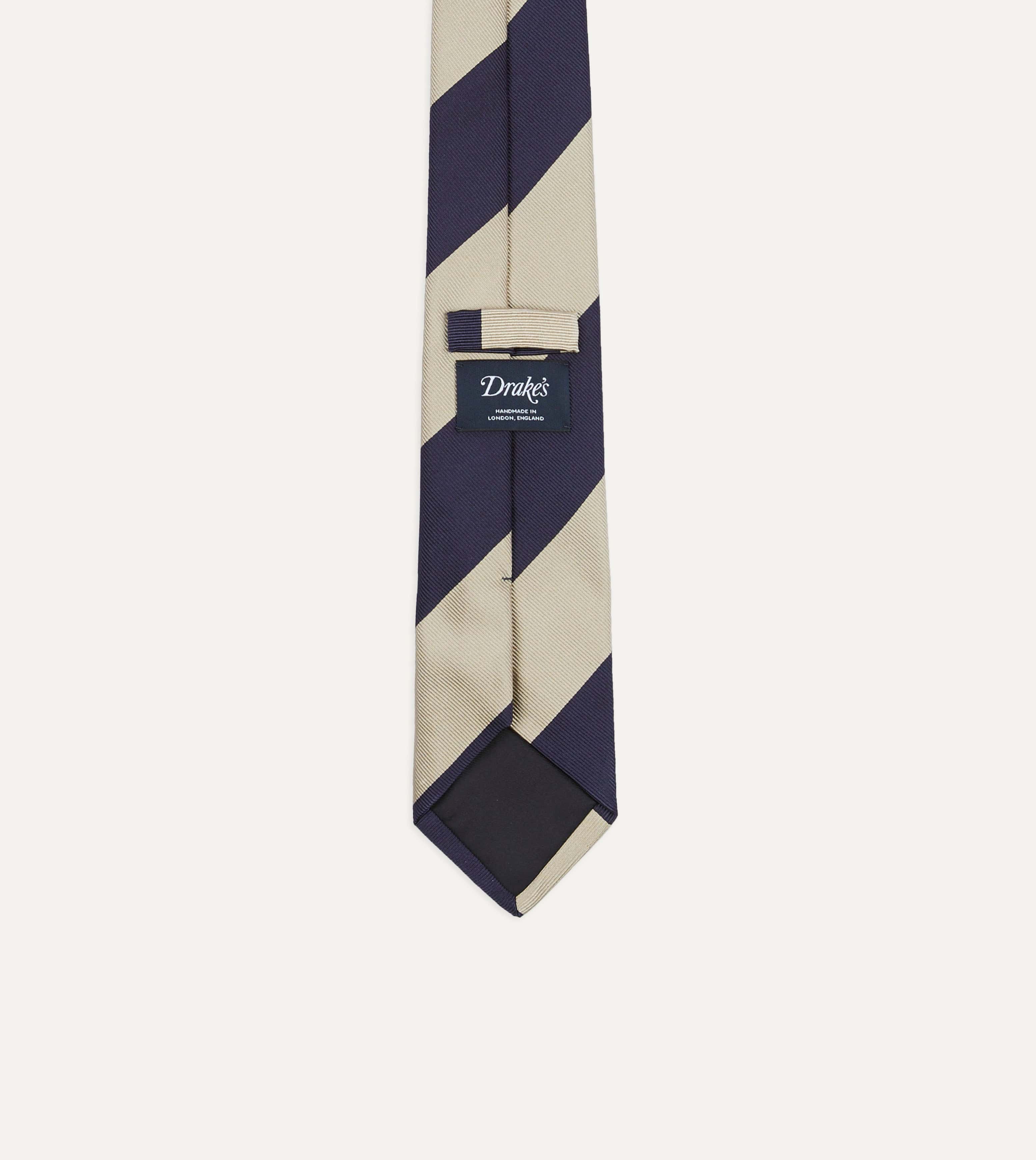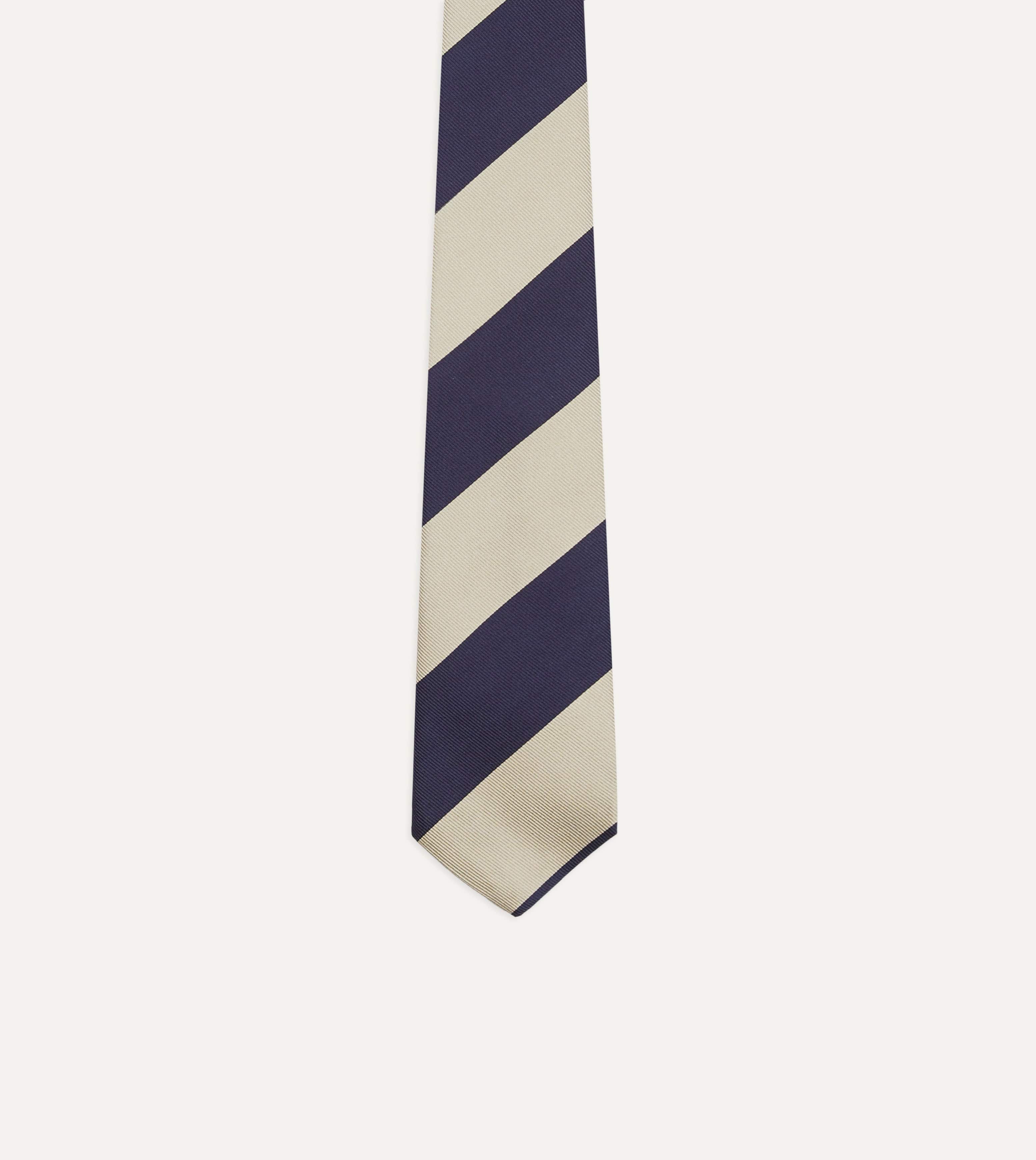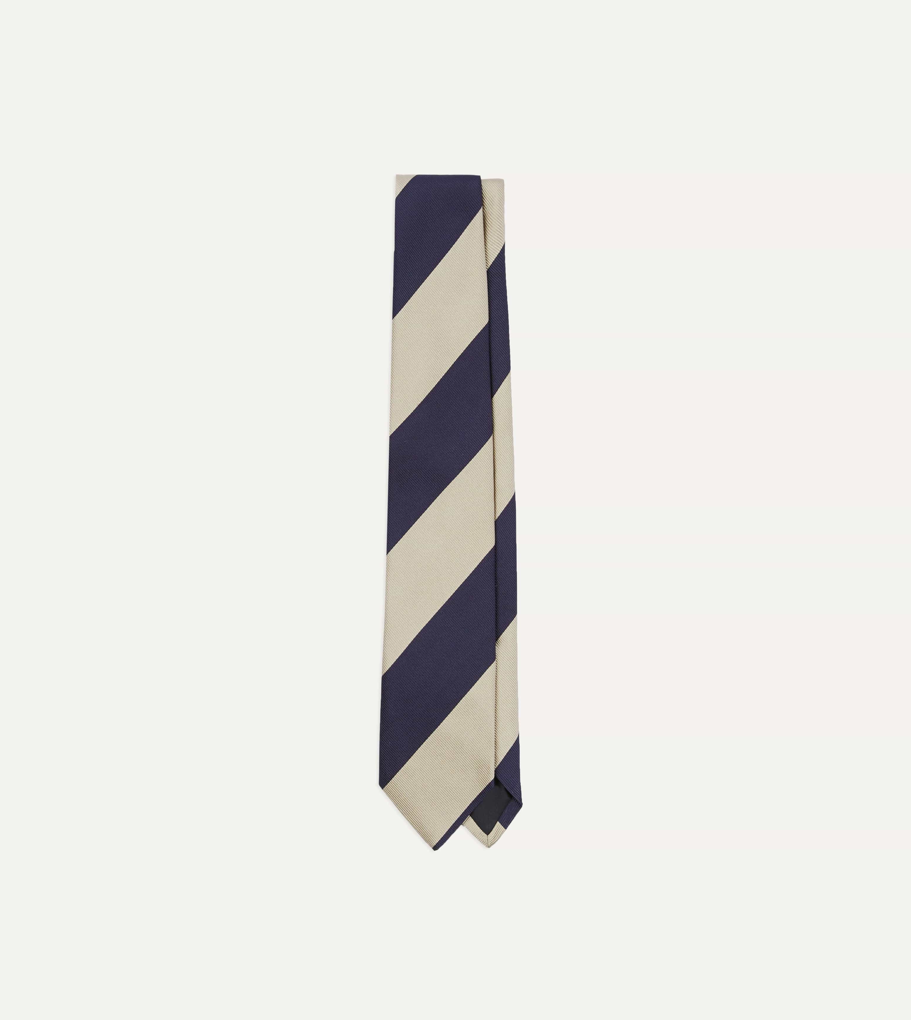 Navy and Ecru Wide Stripe Repp Silk Tipped Tie