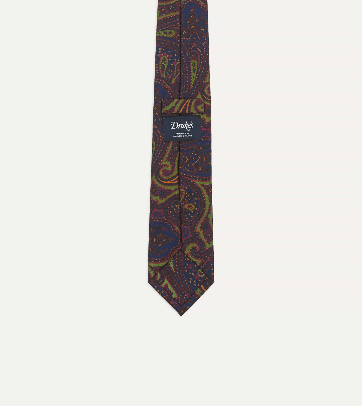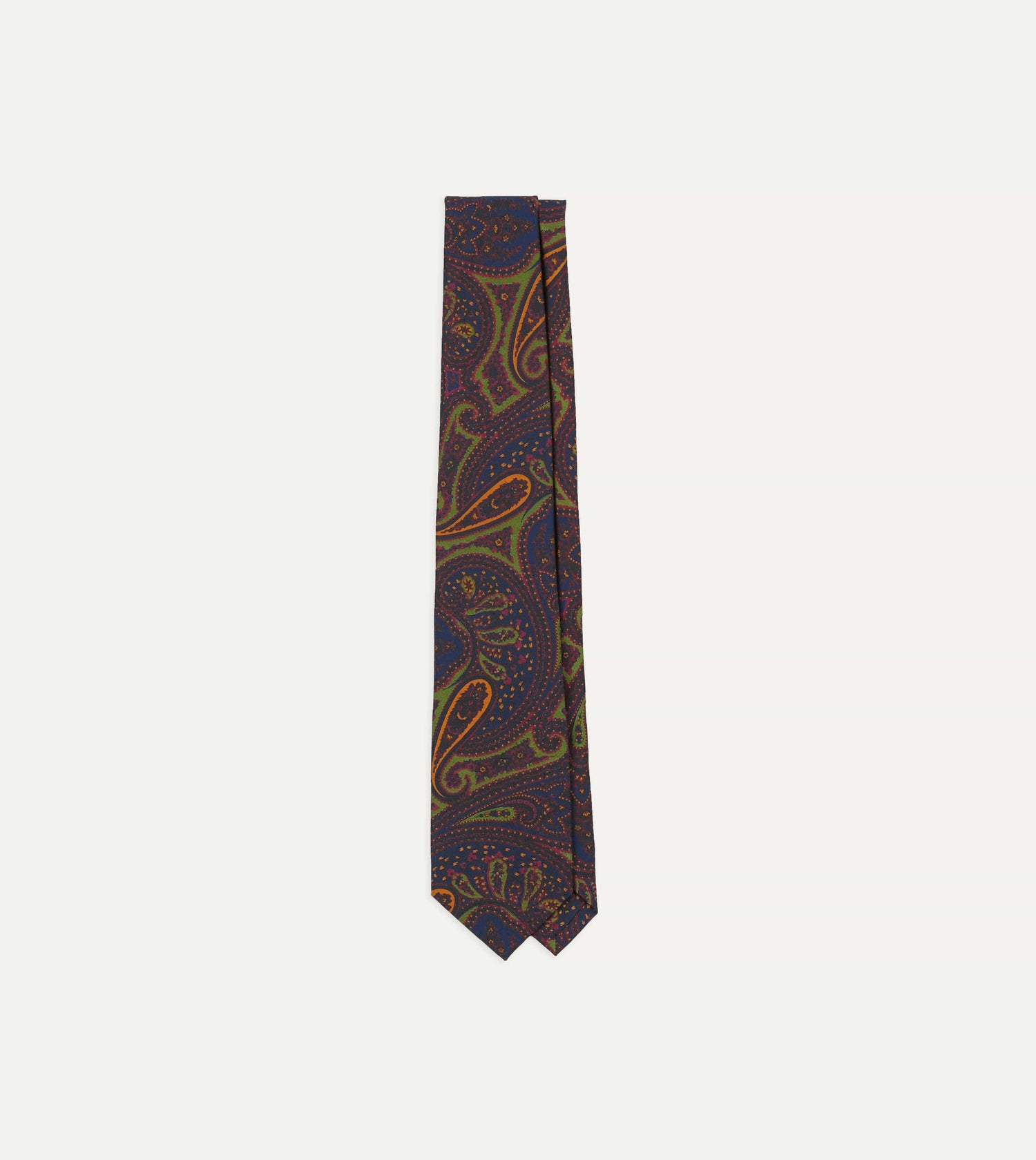 Navy and Green Large Paisley Print Madder Silk Self Tipped Tie