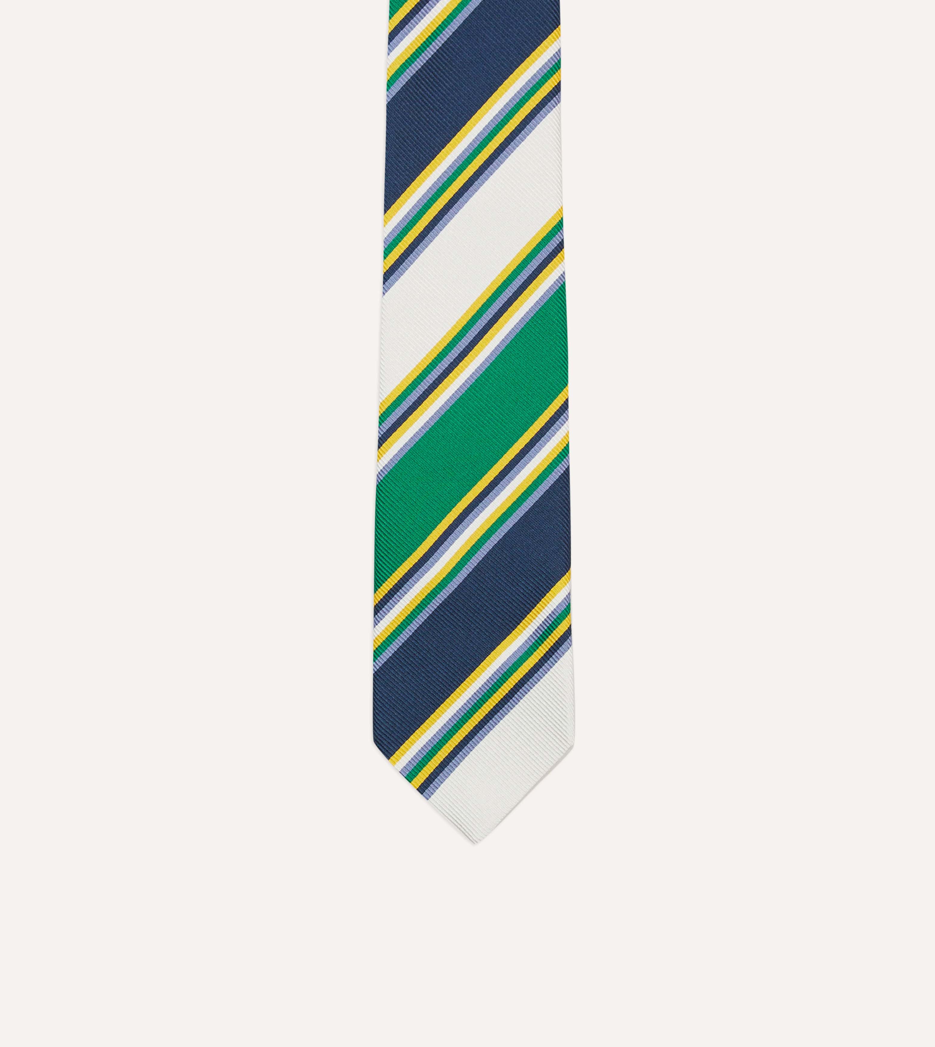 Navy, Green and White Stripe Mogador Silk Tipped Tie