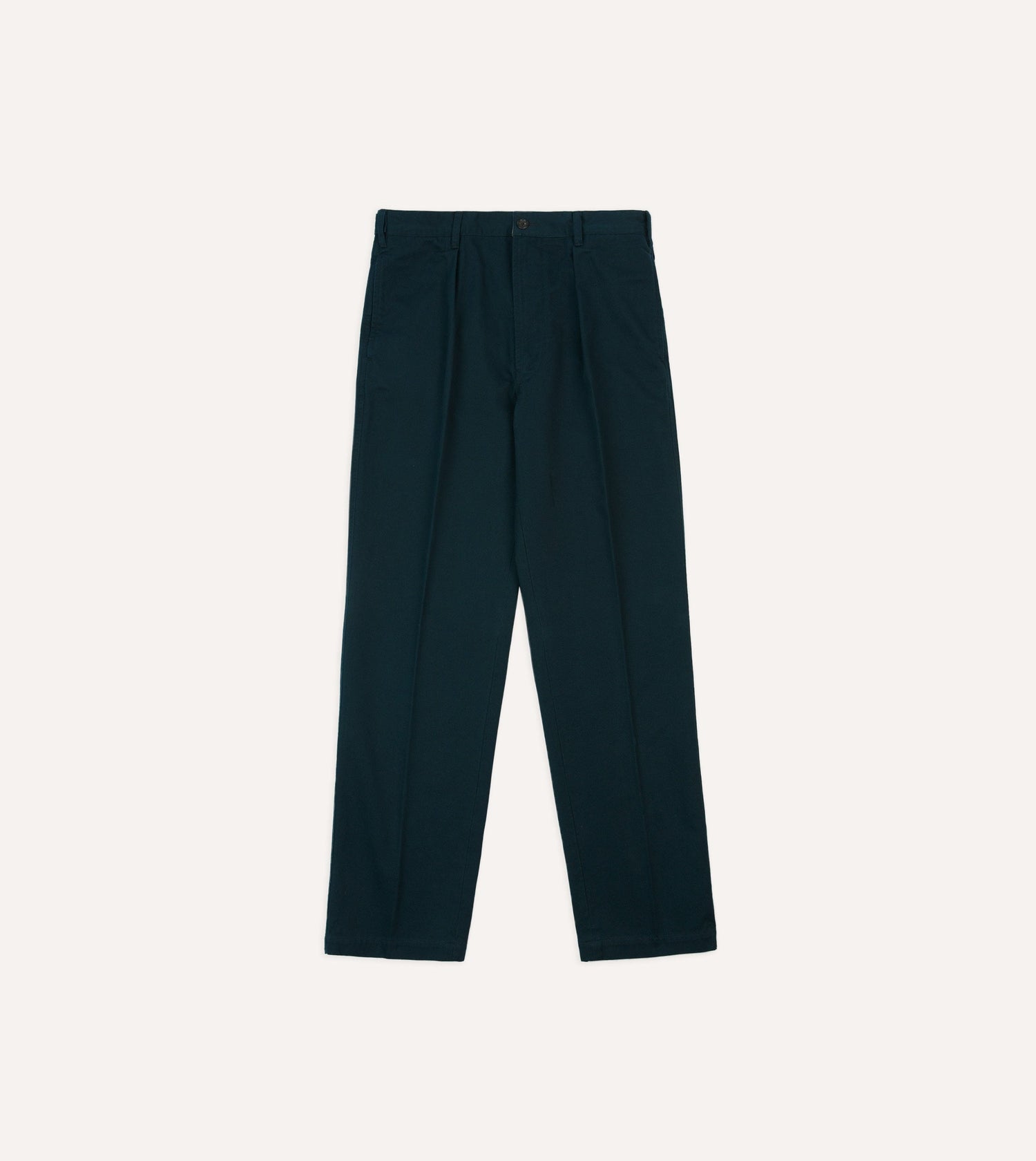 Featuring single pleats for greater freedom of movement, with a gentle taper below the knee, affording a clean, stylish silhouette suitable for year-round wear.