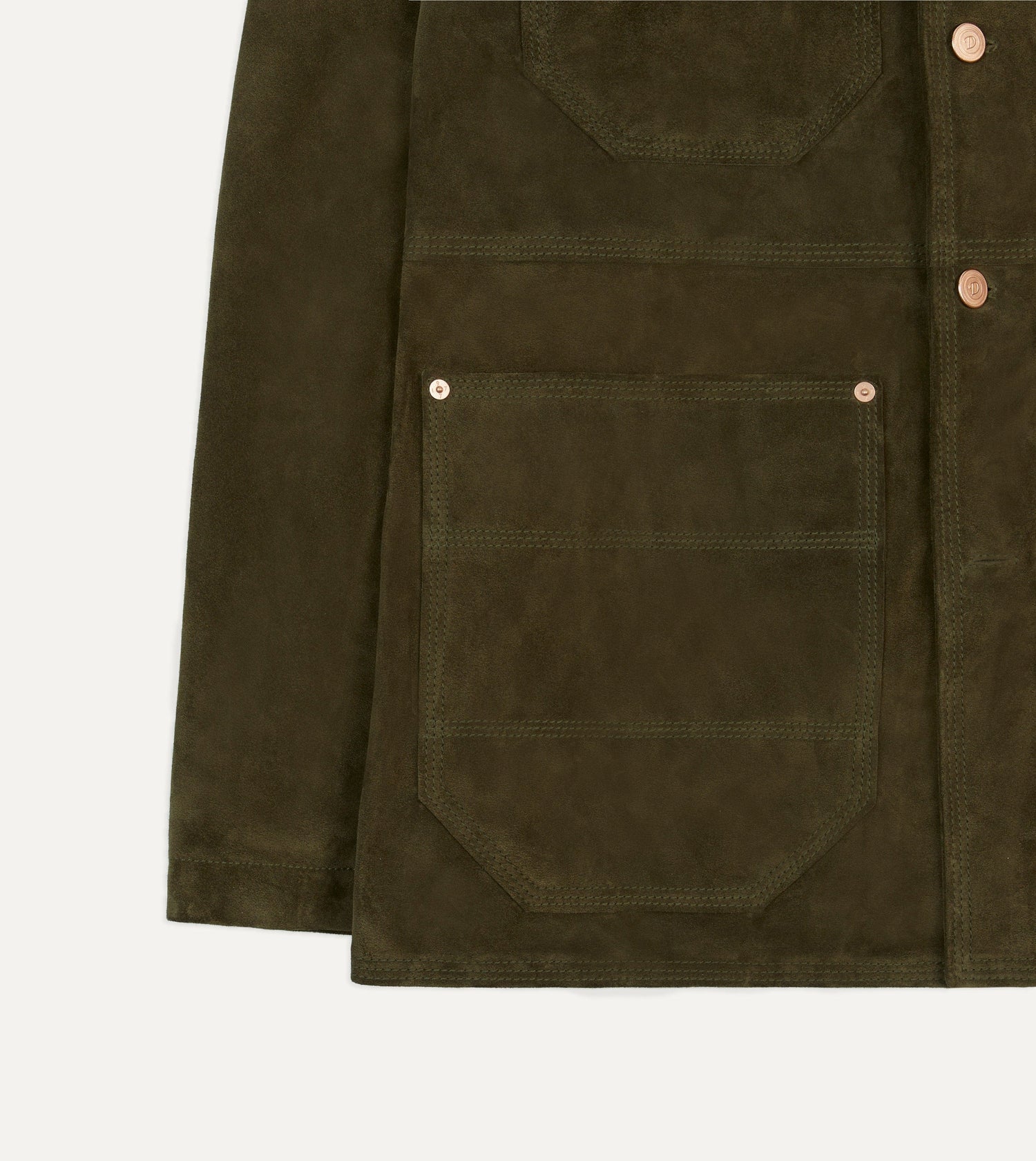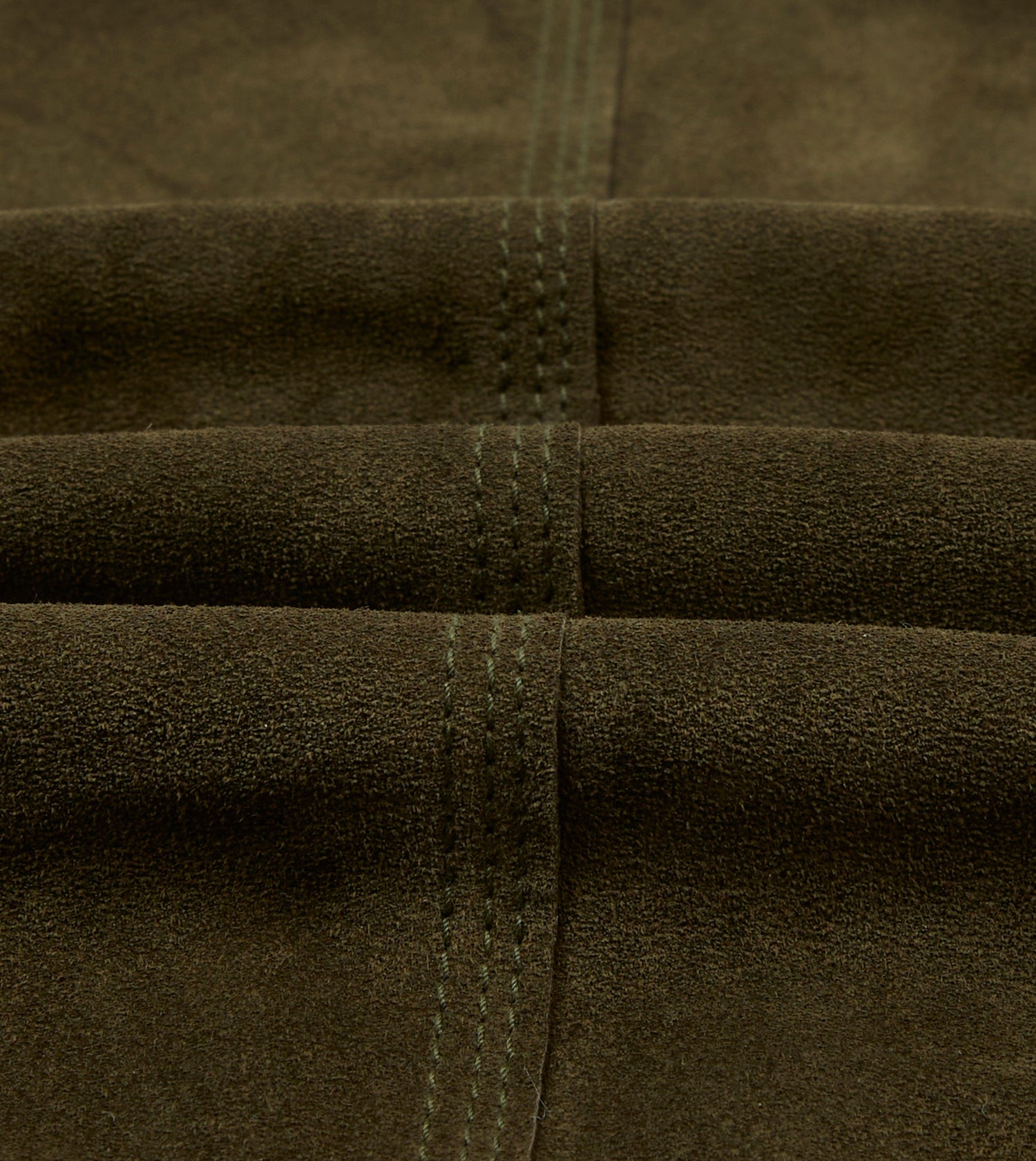 Modelled on our classic five-pocket chore, with tonal triple needle stitching and brass hardware throughout, we reinforced the pockets and panelling and selected a supple and lightweight Italian suede to add a bit of tactility (and manoeuvrability) and reinforced the pockets and panelling.