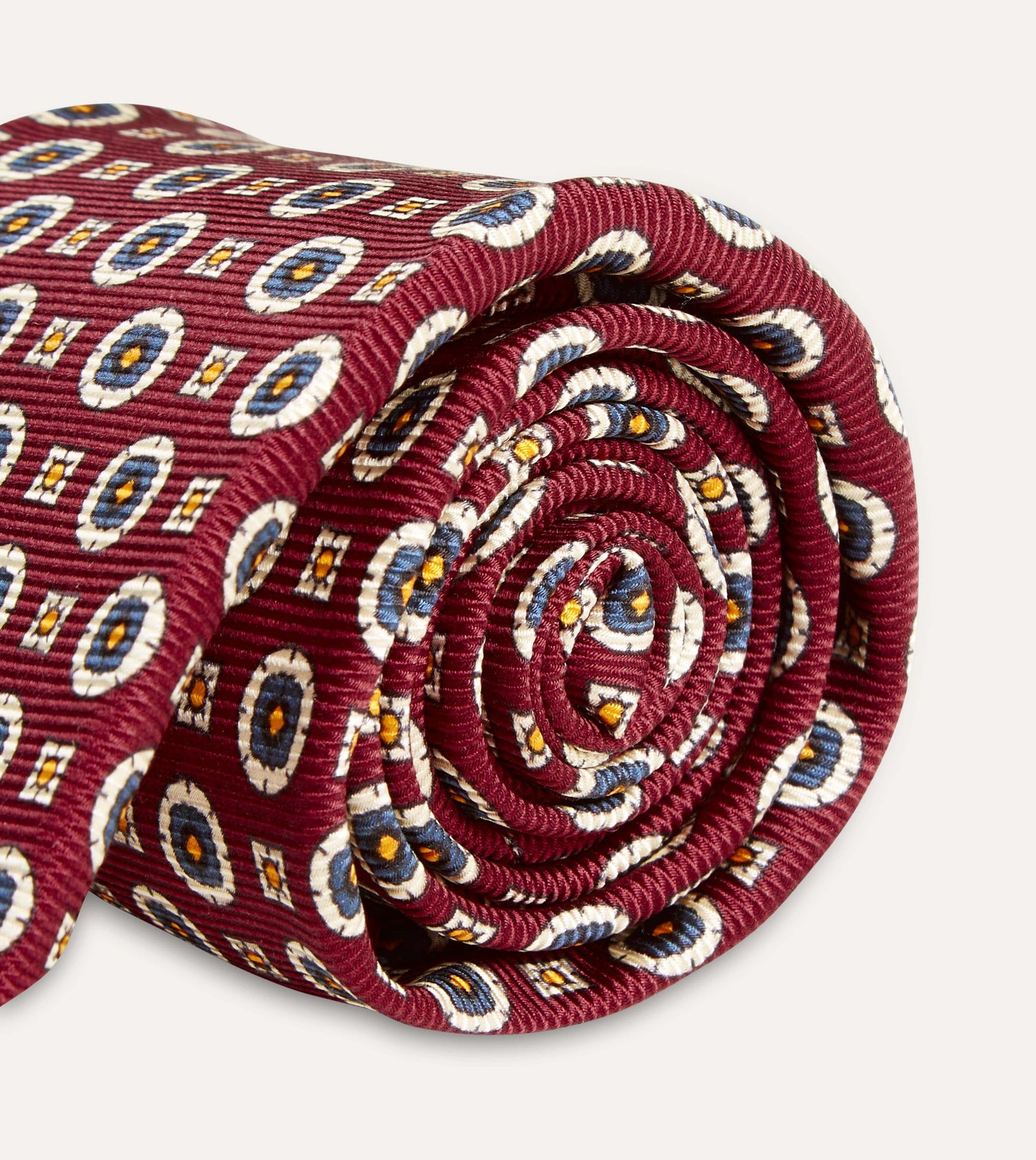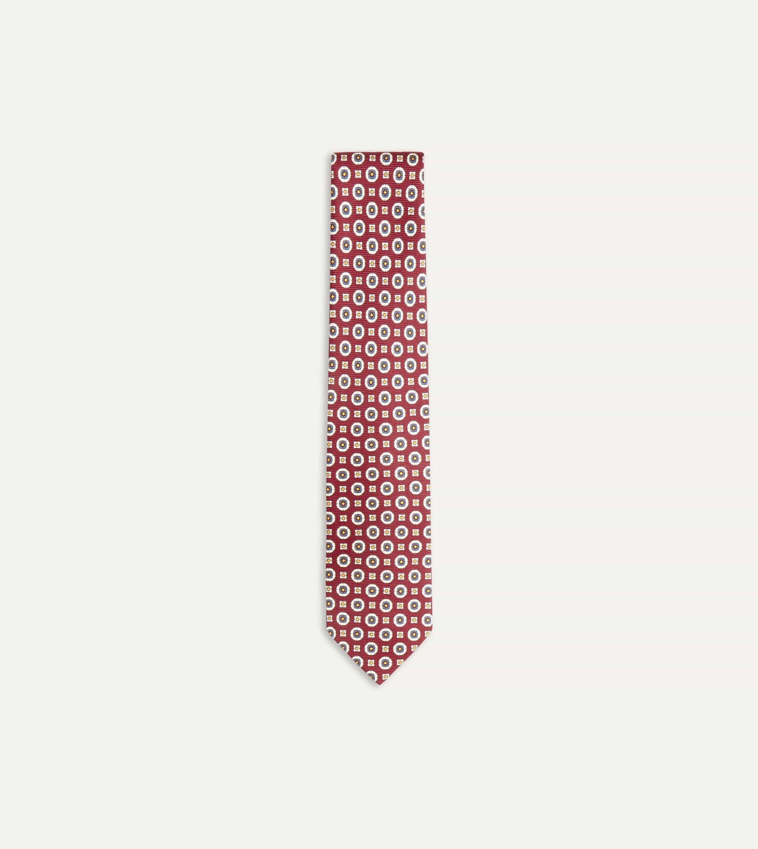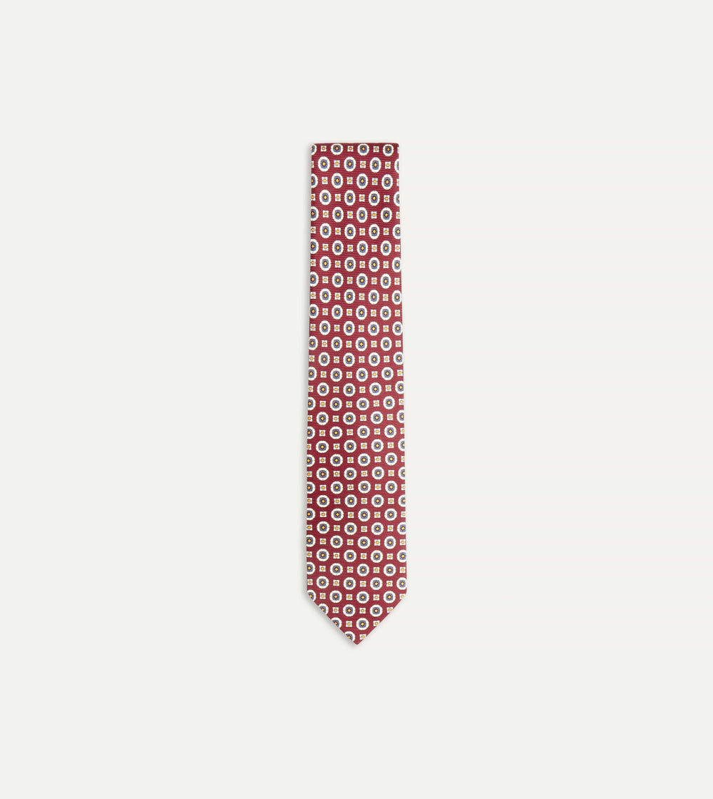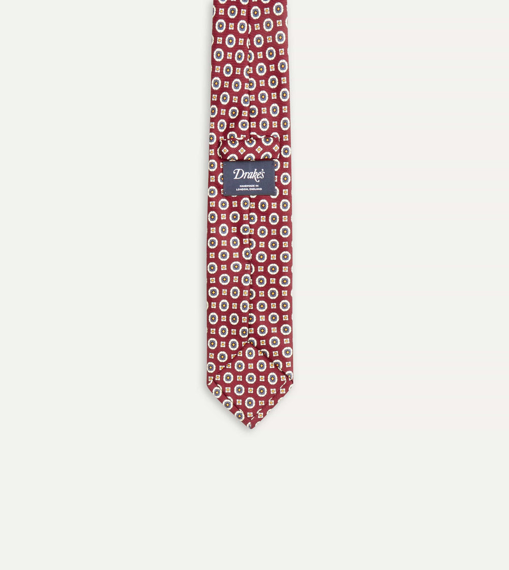 An ornate medallion design simply exudes elegance, particularly when printed on pure silk and hand rolled by our dedicated tiemakers in the heart of east London.