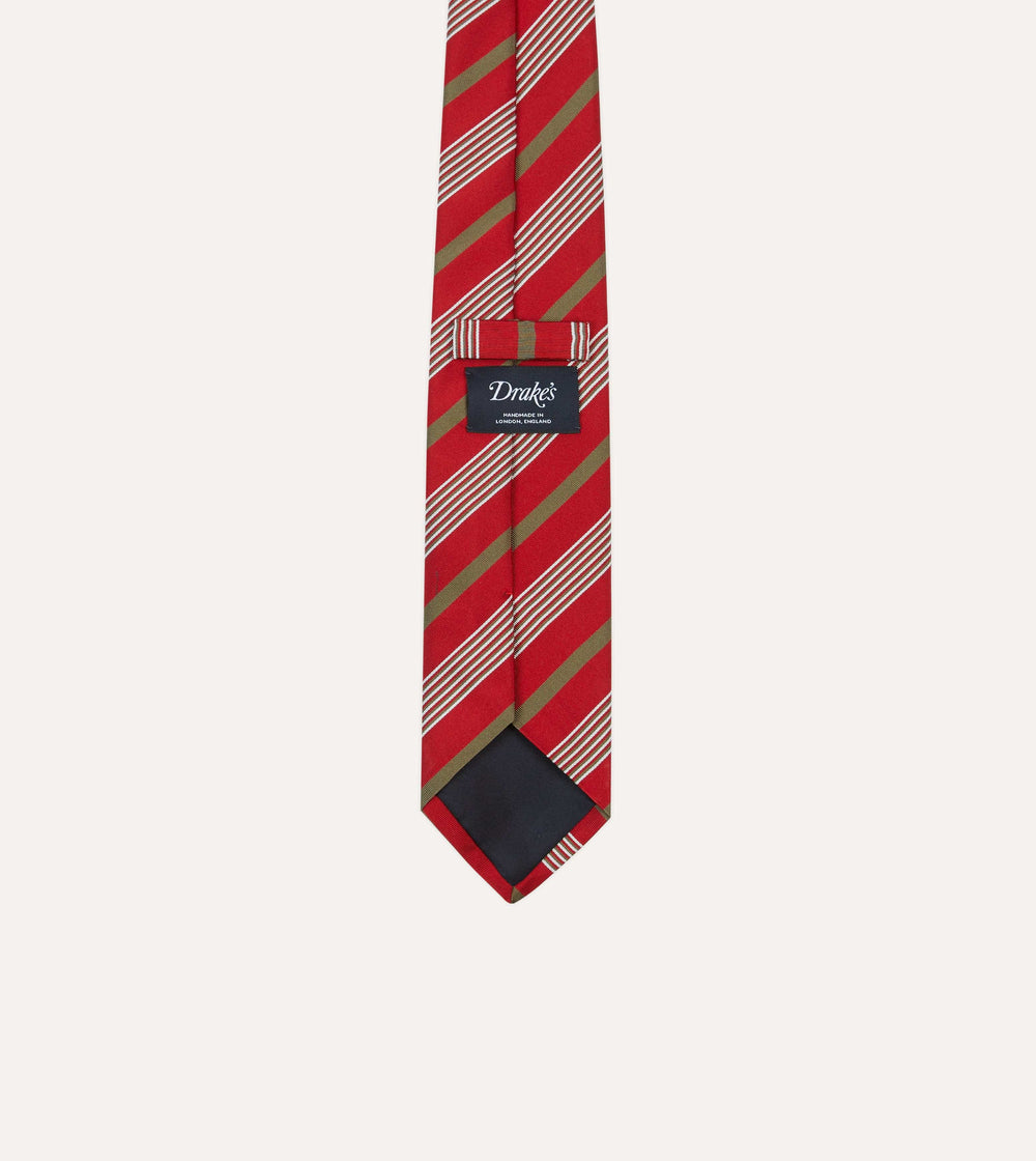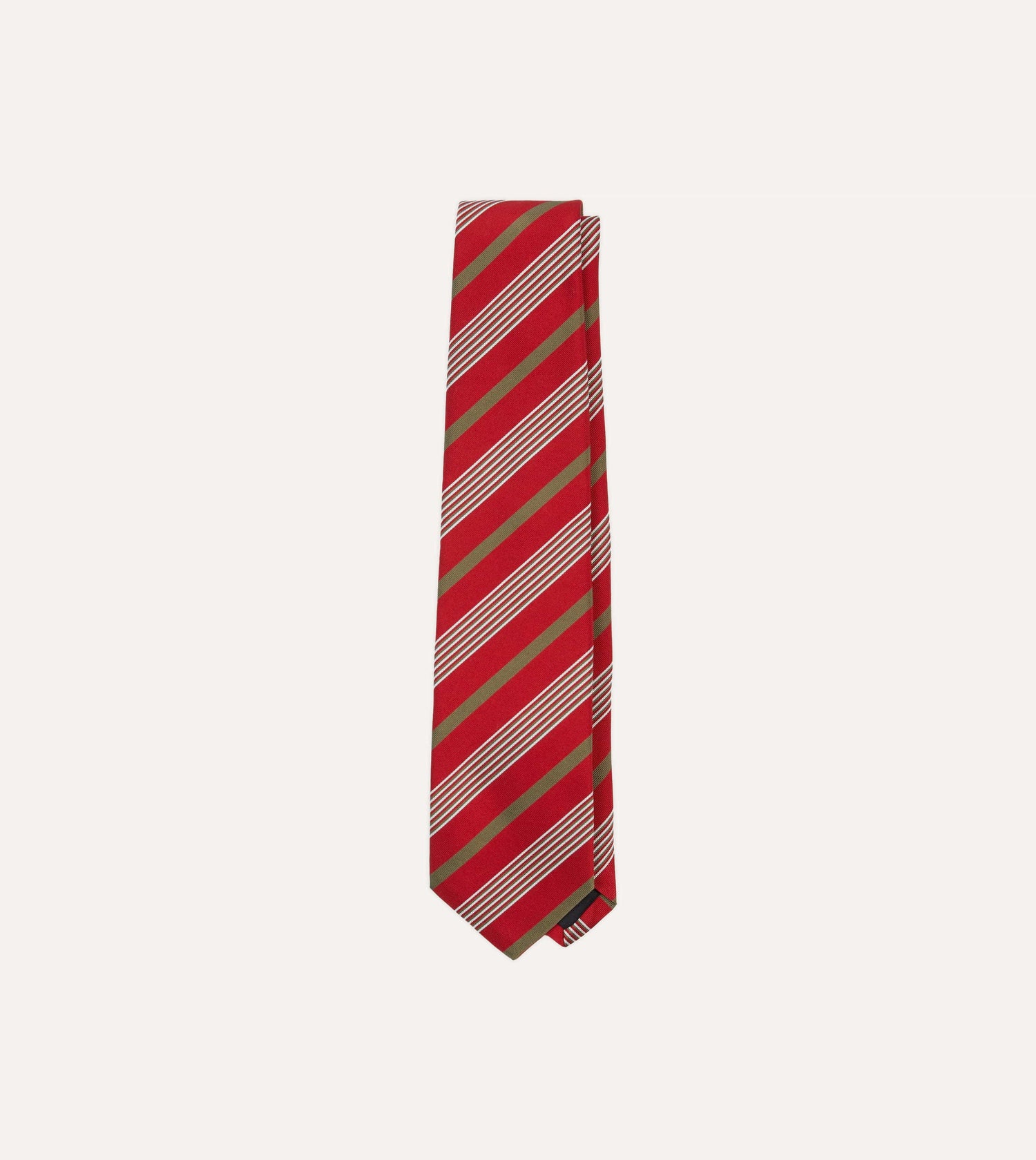 Red, Olive and White Multi Stripe Mogador Silk Tipped Tie
