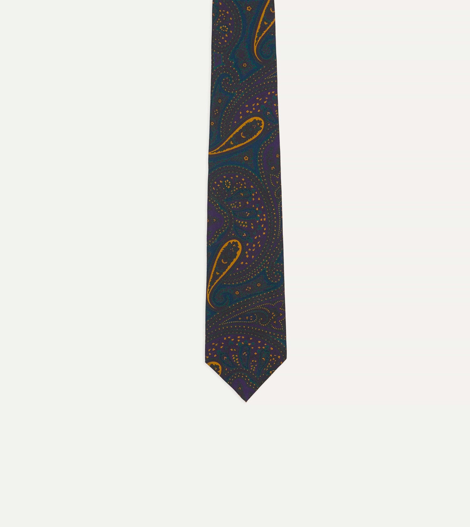 Teal and Purple Large Paisley Print Madder Silk Self Tipped Tie