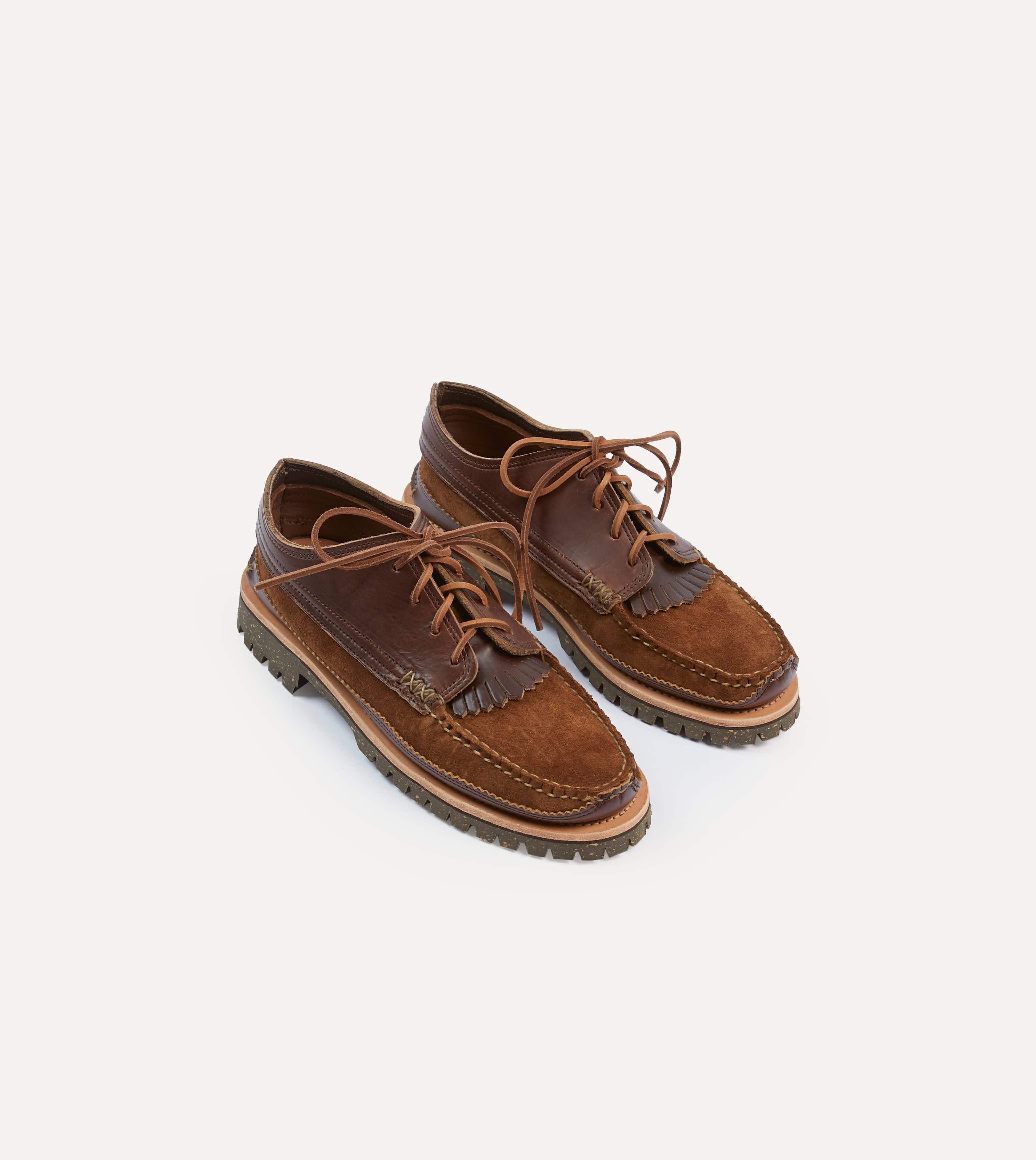 Based on a New England hiking boot worn by early wilderness guides, the Maine Guide Ox from Yuketen is constructed from multiple pieces of leather, including a rough-out leather from Yuketen’s factory in Maine, full grain flesh-out leather from Toscana, Italy and Horween’s famous Chromexcel pull up leather, tanned in Chicago, Illinois. These are hand-stitched for a moulded fit, and featuring cowhide laces, a kiltie and an Italian-made Cortina lug sole.