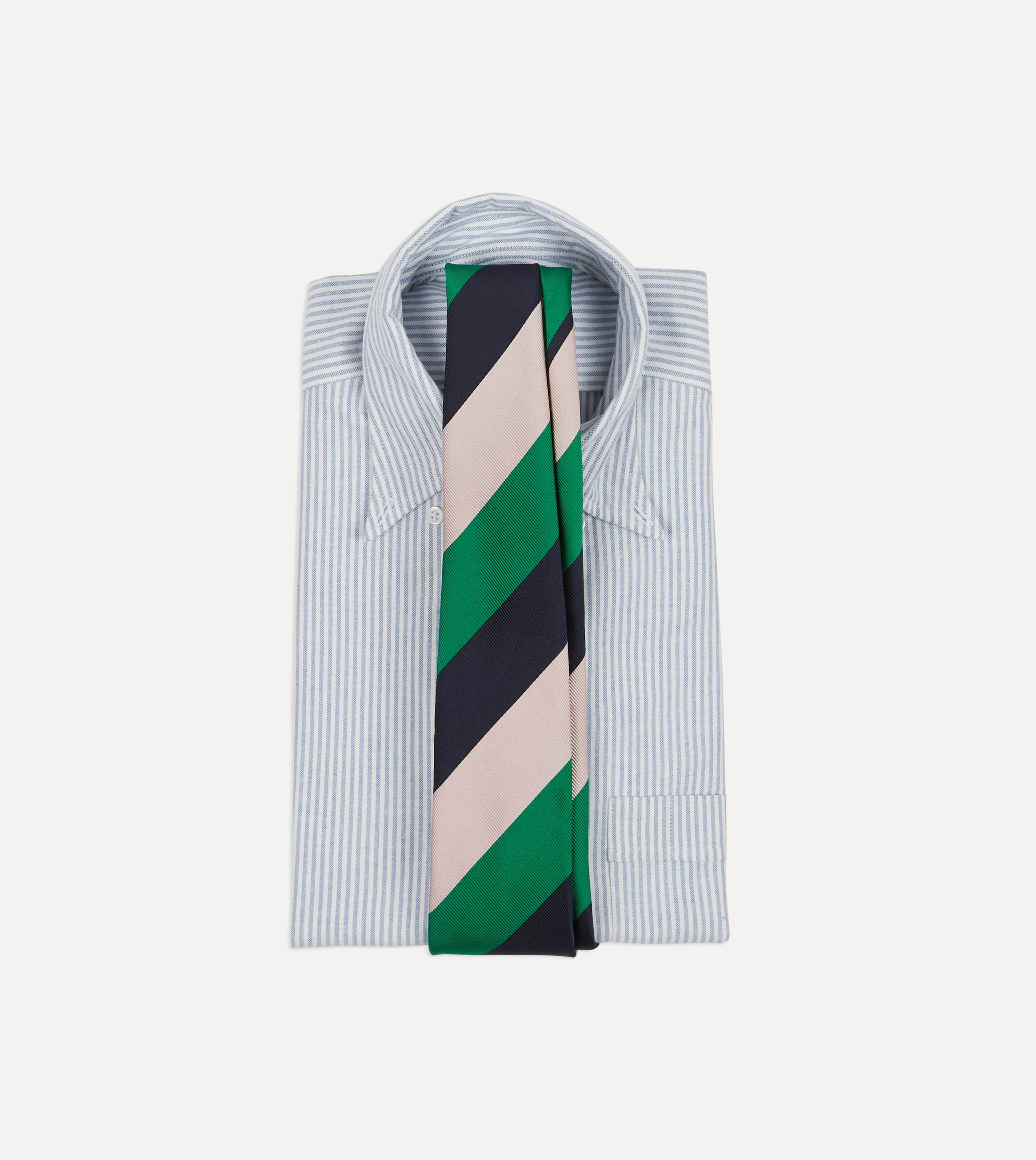 A striped repp silk tie is one of the most enduring pieces of neckwear available, redolent of earlier periods of style, while retaining a distinctly modern feel.
