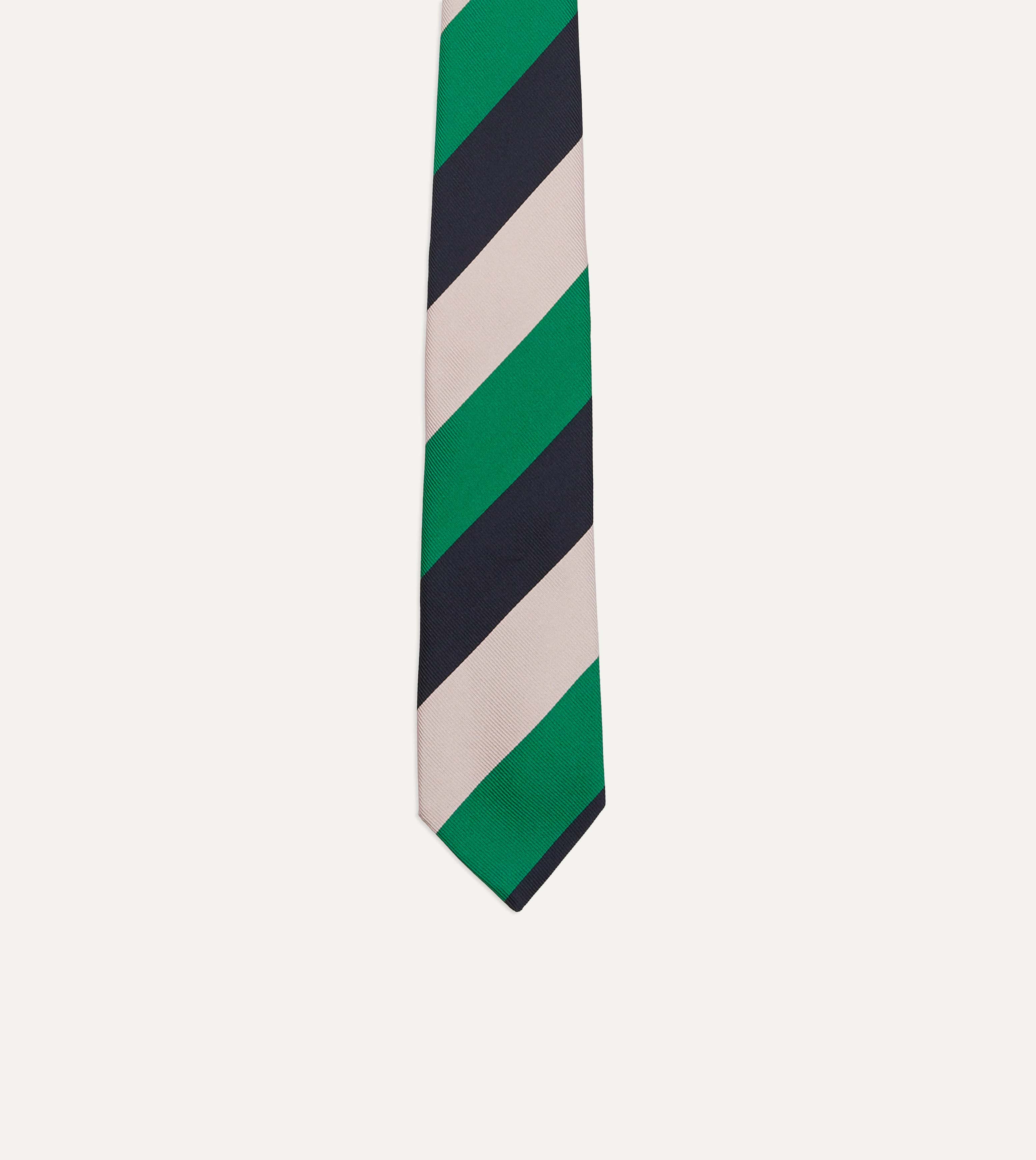 Bright Green, Navy and White Stripe Tipped Repp Silk Tie