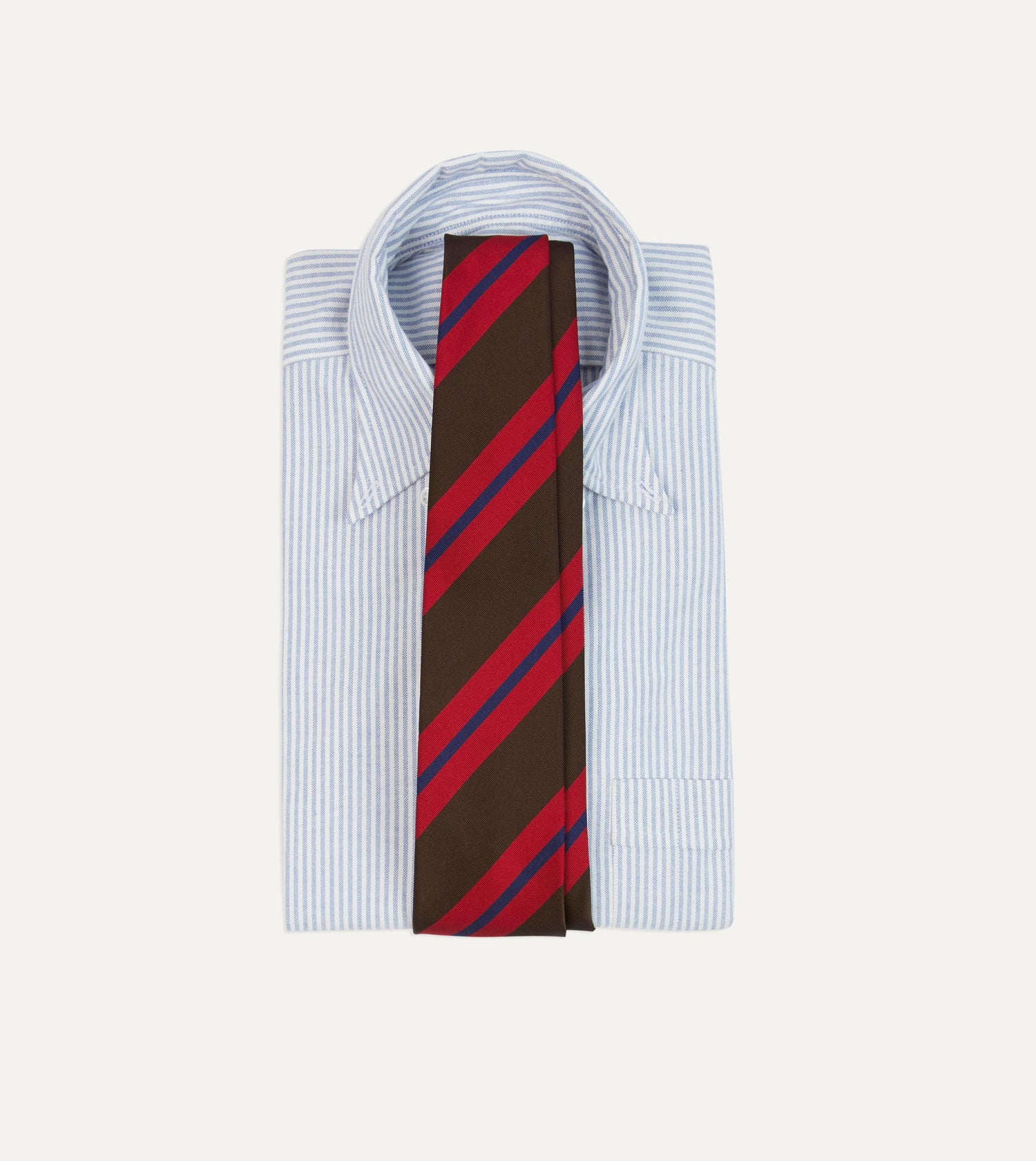 Brown and Red Stripe Mogador Silk Tipped Tie