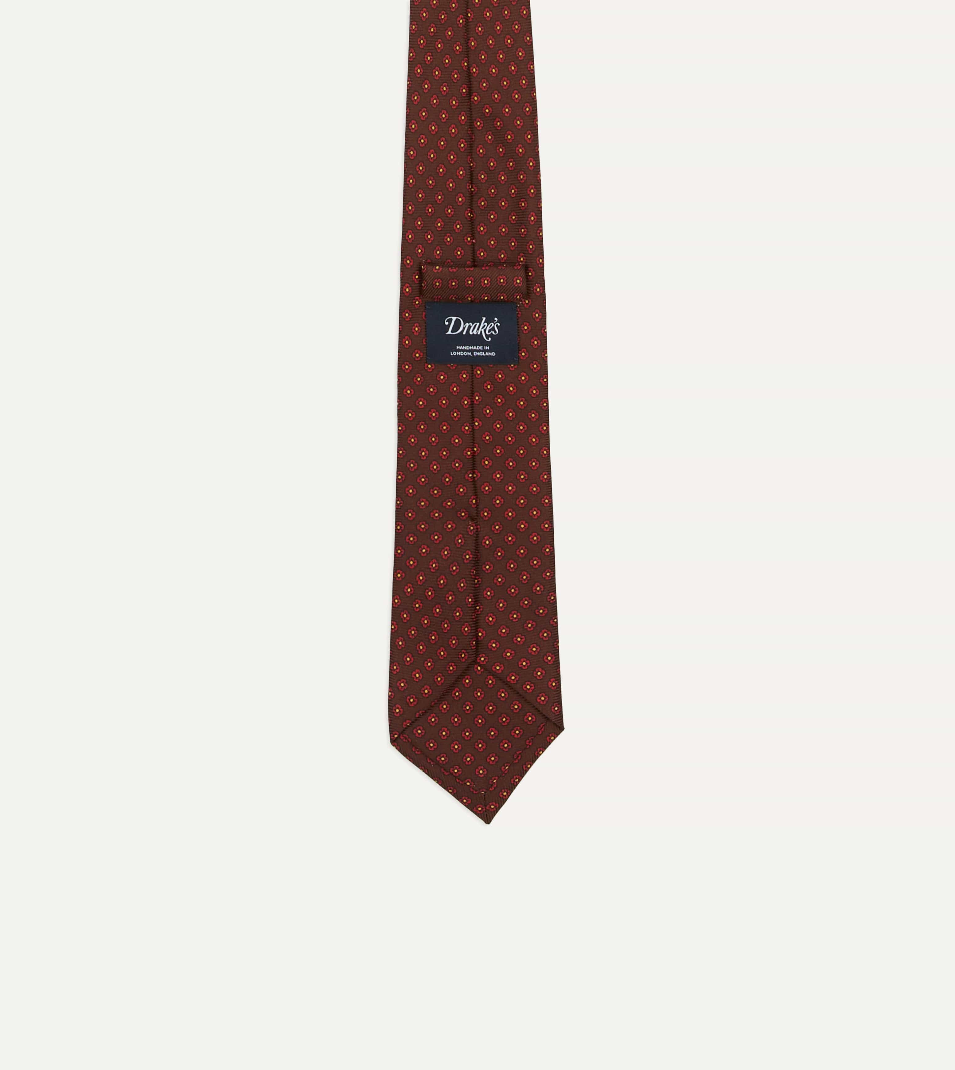 Brown Micro Geometric Print Silk Twill Self Tipped Tie