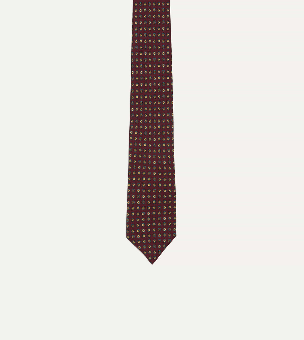 Burgundy Micro Geometric Print Silk Self Tipped Tie