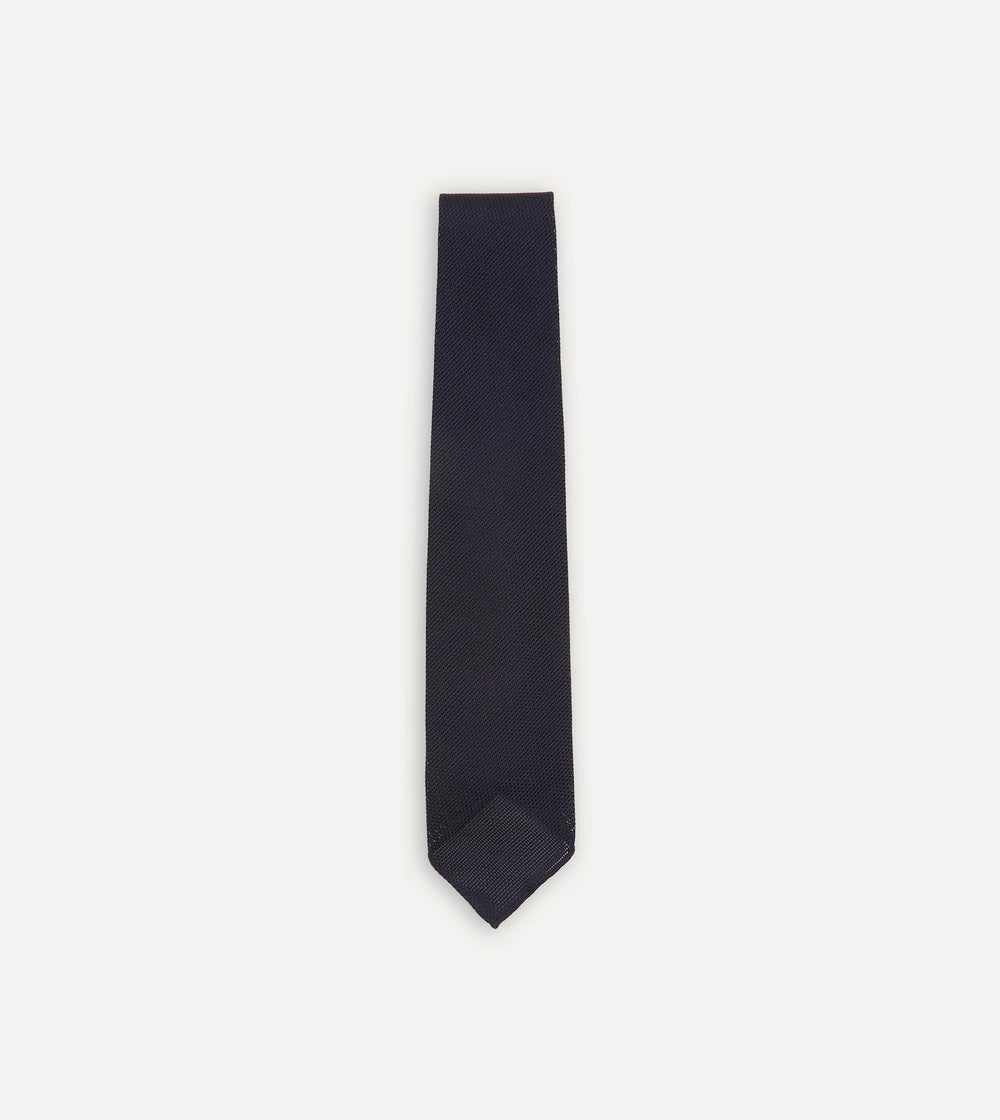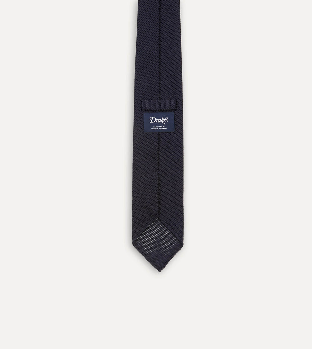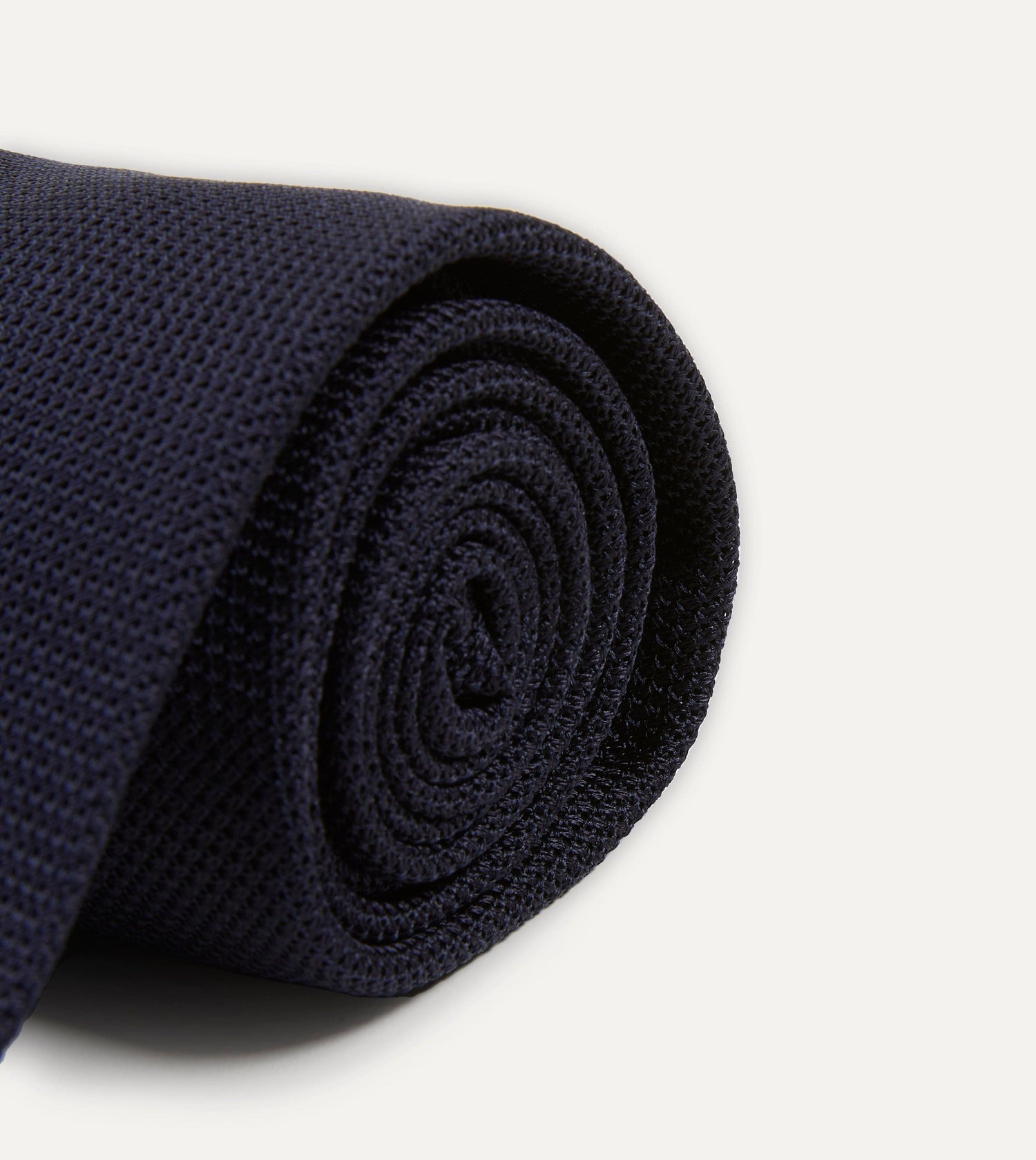 Dark Navy Fine Woven Grenadine Silk Hand Rolled Tie