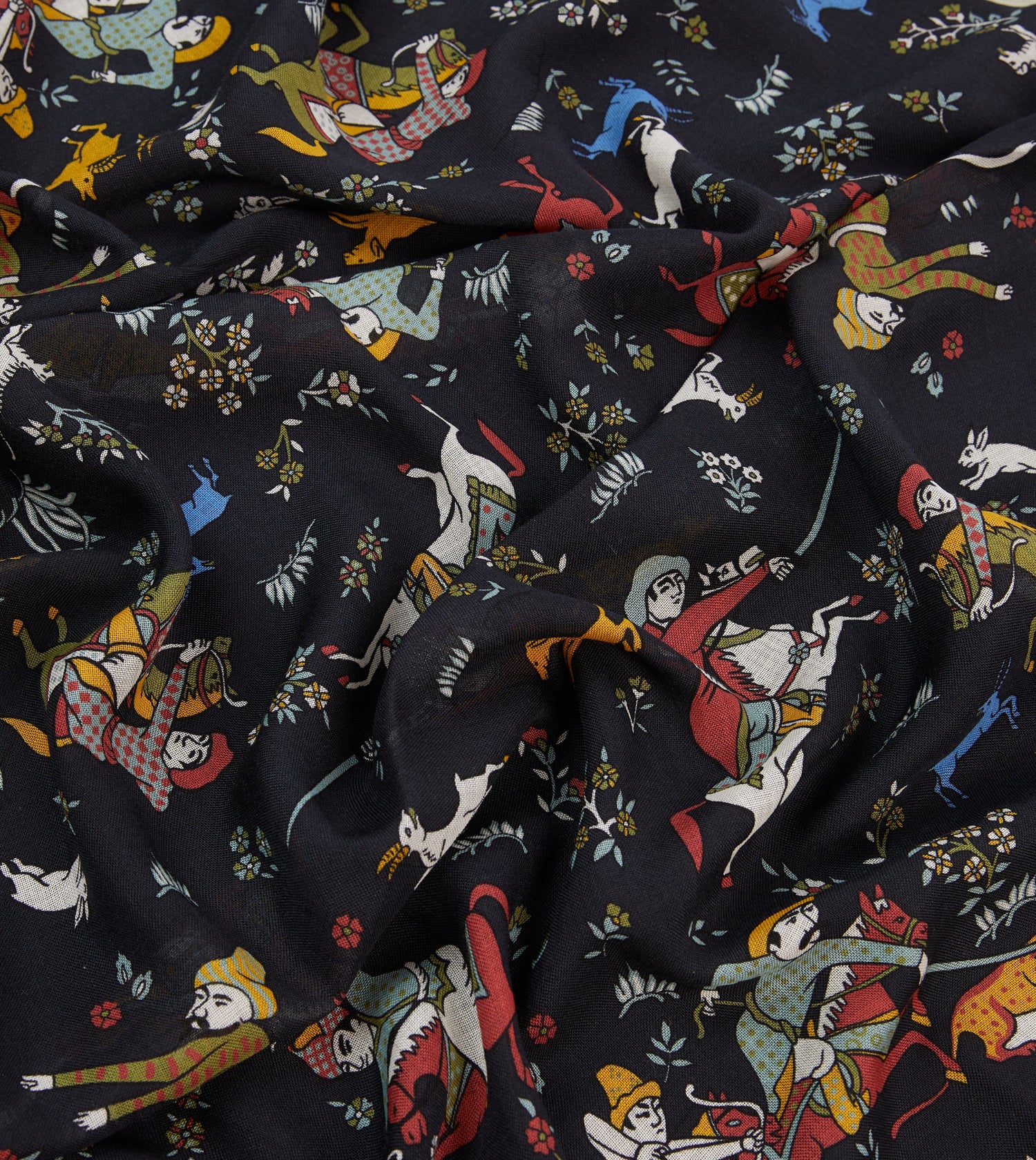Taken from our extensive design archive, this classic forest animals motif has been vividly applied to a blend of wool and silk.