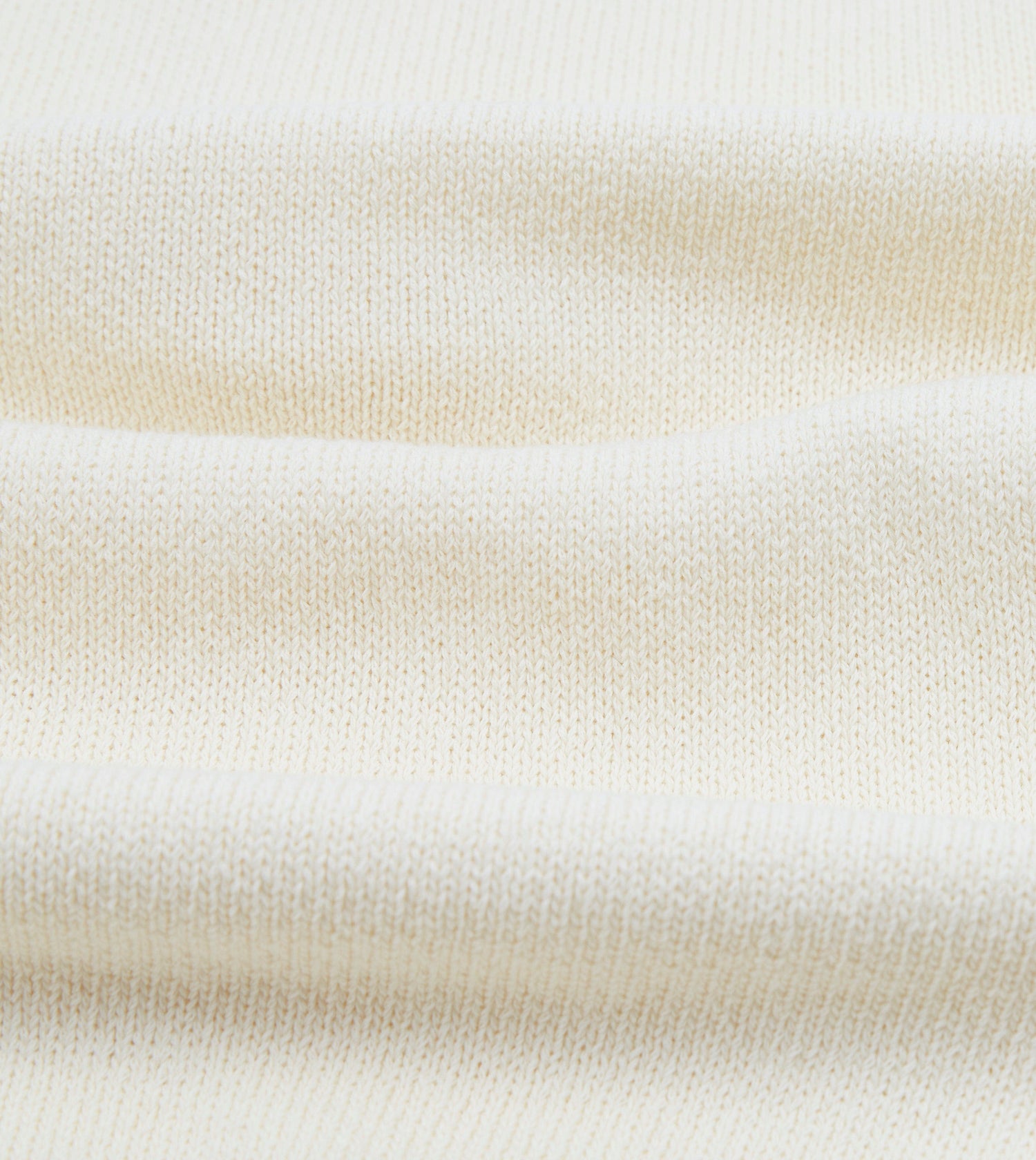 Ecru Knitted Crepe Cotton Short-Sleeve Polo Shirt