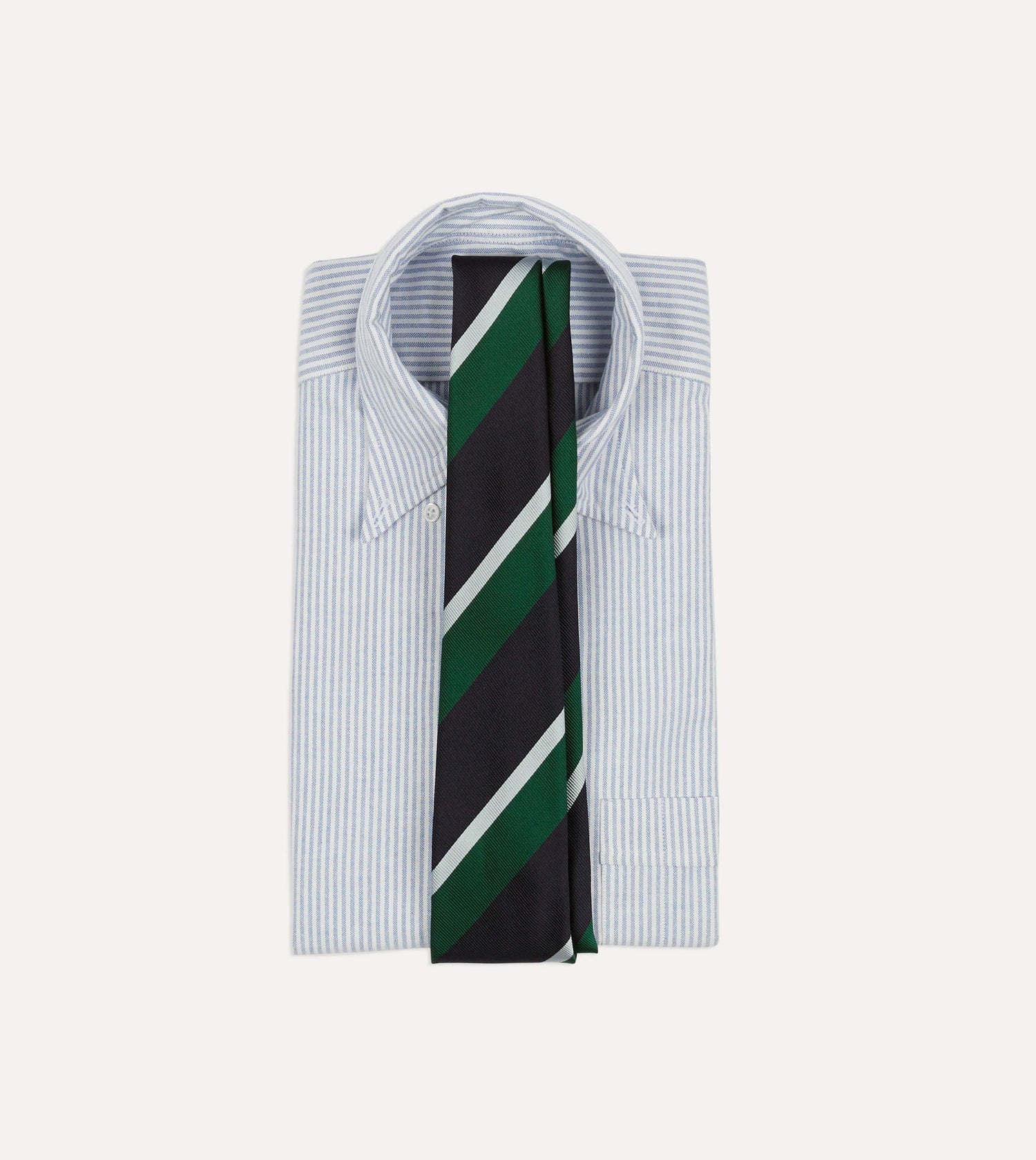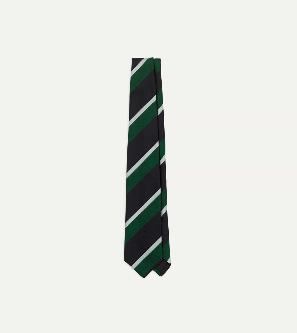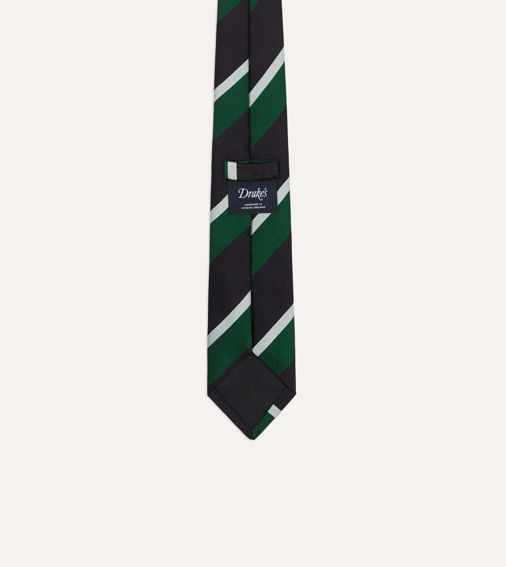 Green, Navy and White Stripe Tipped Repp Silk Tie