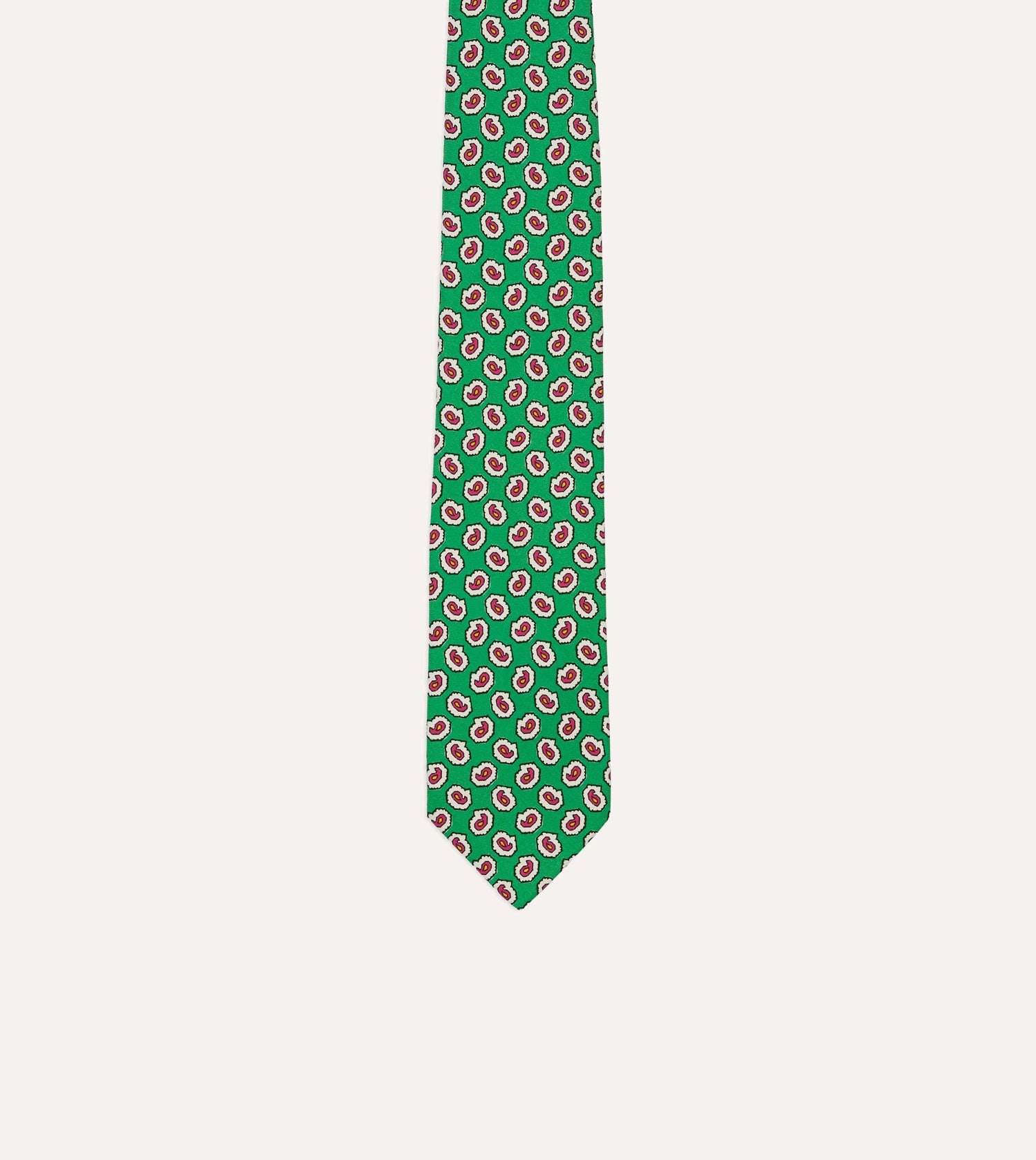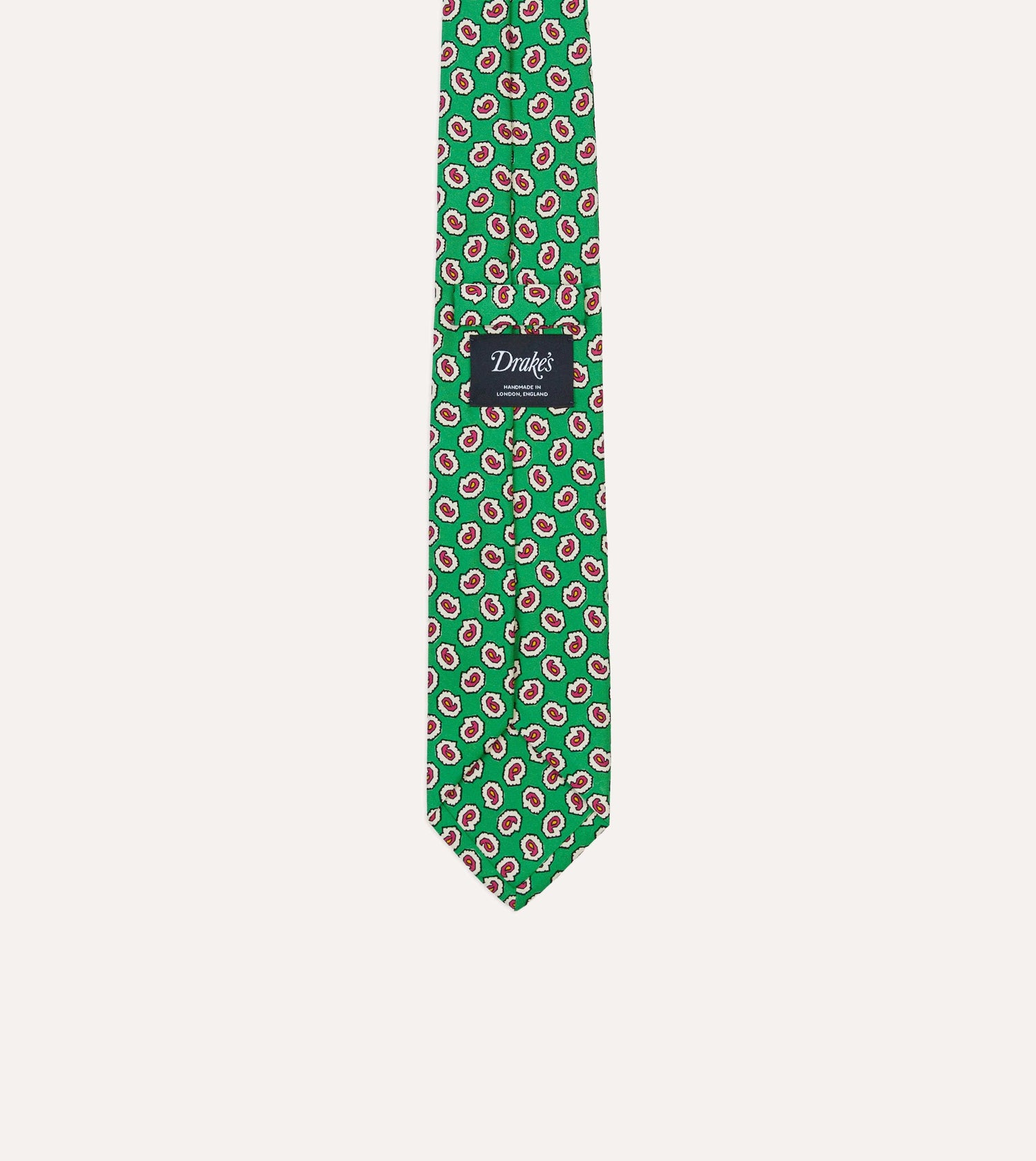 This design, printed in Macclesfield on pure silk, features a classic paisley, and is reminiscent of the elegant late 1960s neckwear favoured by rockstars and royalty alike. Made by hand in London.