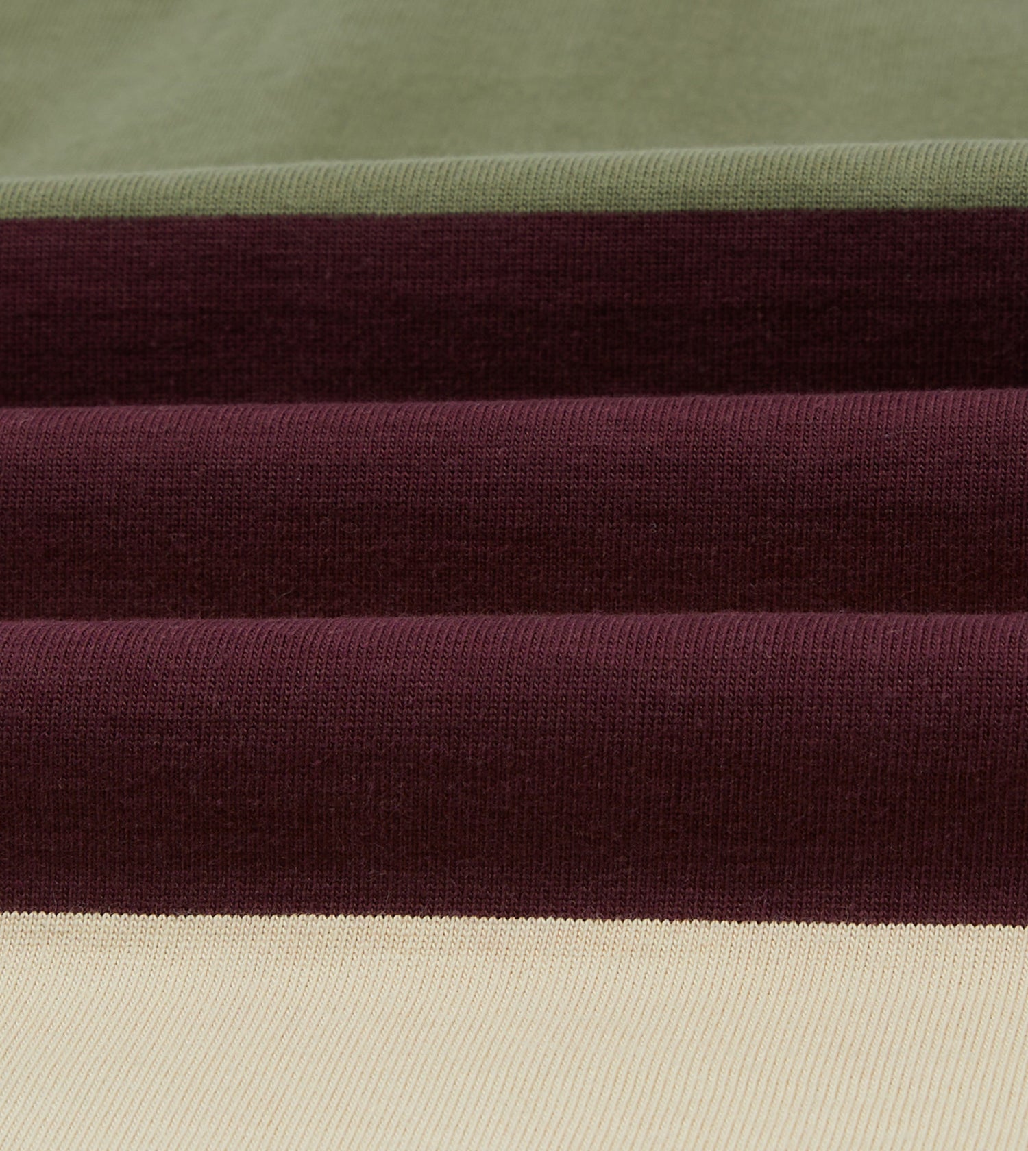 Khaki, Burgundy and Ecru Half Striped Cotton Rugby Shirt