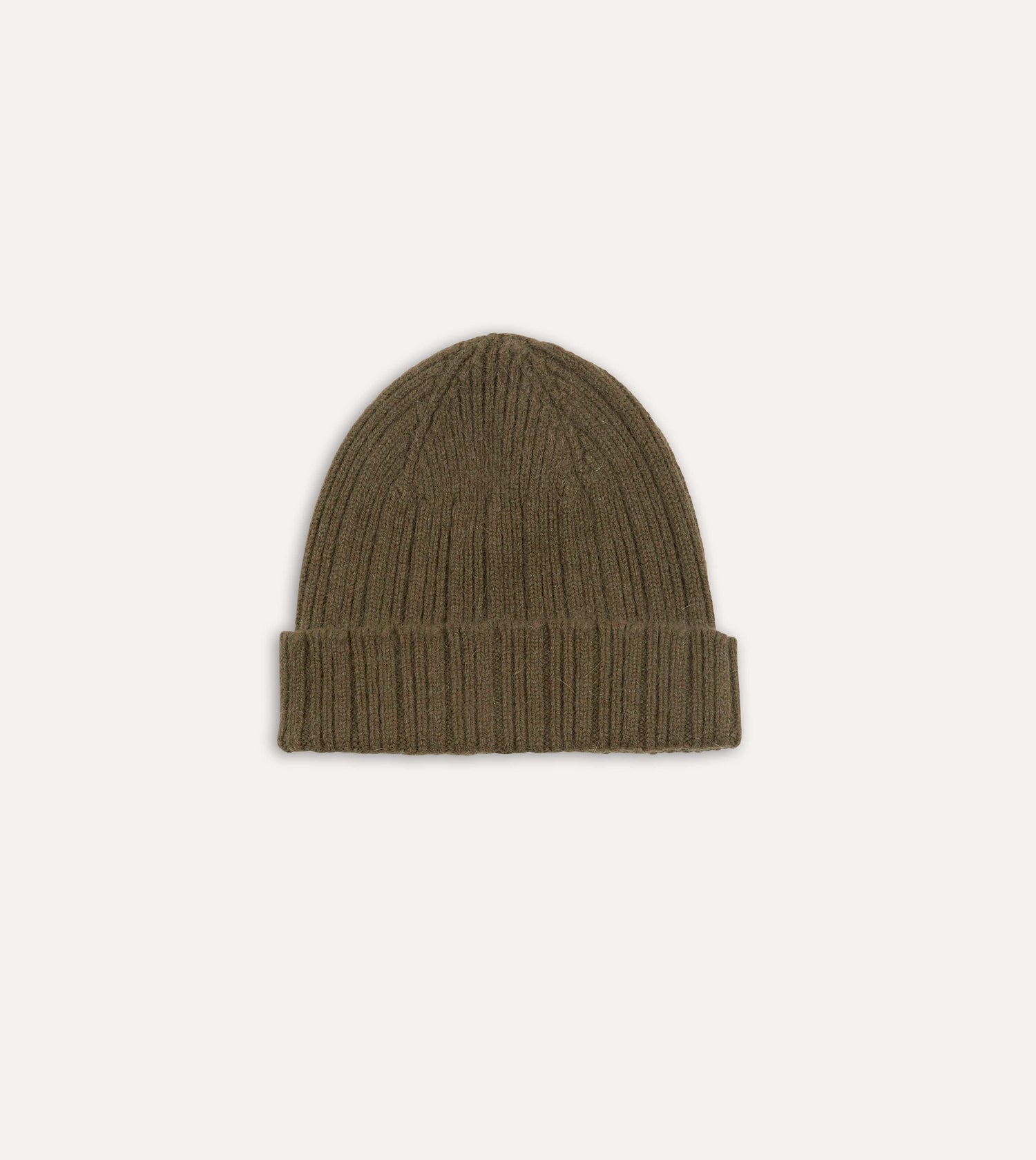 Khaki Green Angora Lambswool Ribbed Knit Cap