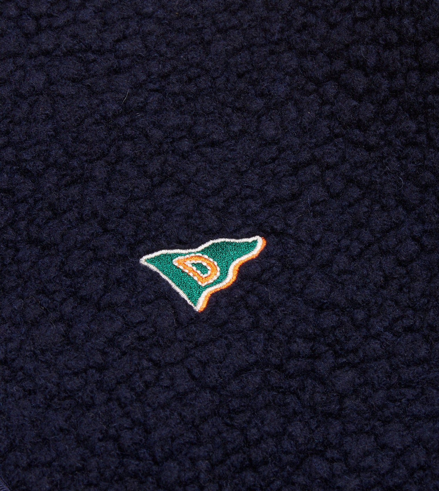 With a nod to everything from outdoorsy Americana and Ivy League prep to classic British countryside attire, this zip-front jacket is constructed from a densely knitted boucle jersey fleece fabric with a pronounced texture. Finished with a single white zip, and our embroidered 'D' flag on the chest, it is a sporty number perfect for the changing seasons.